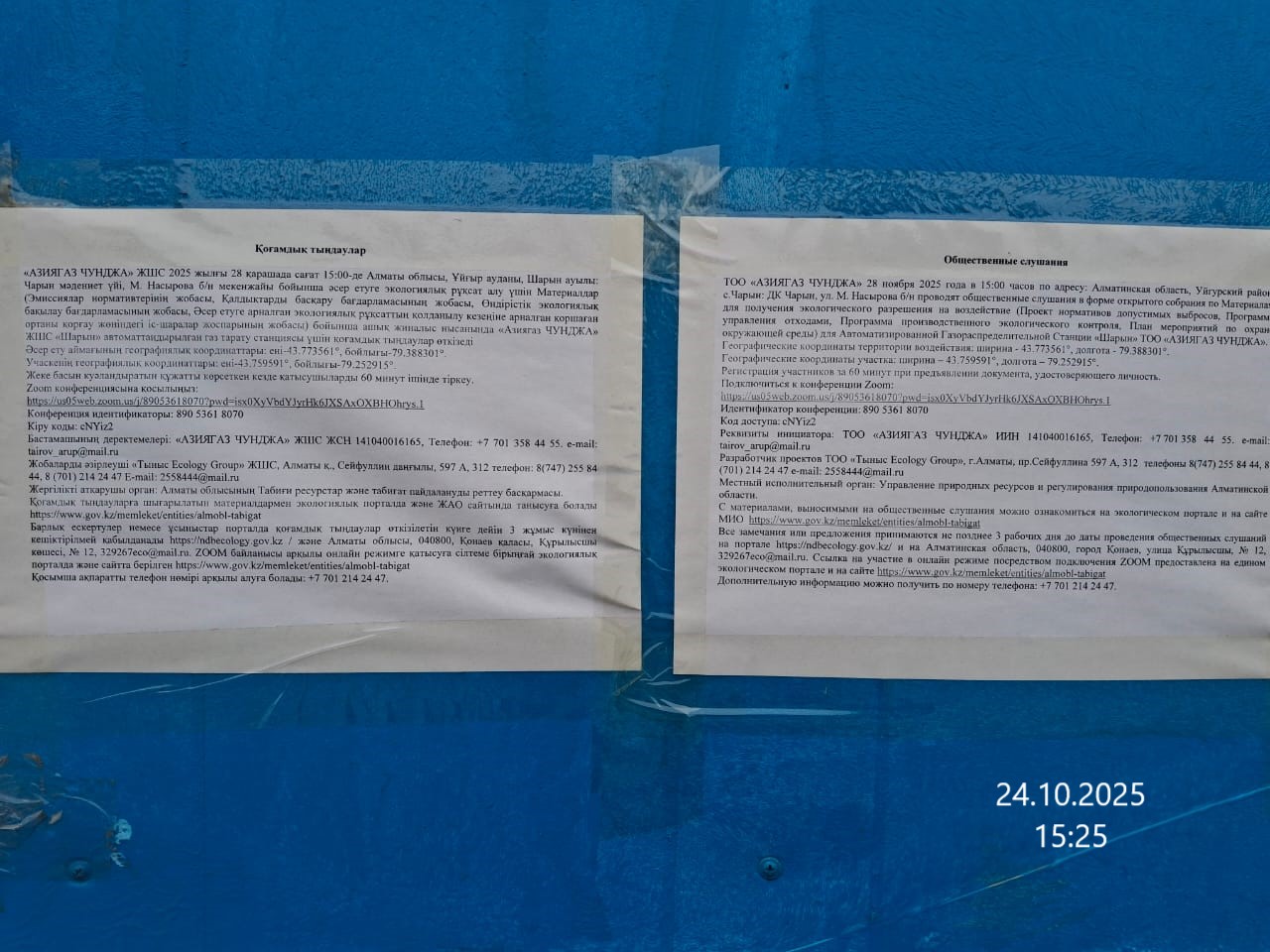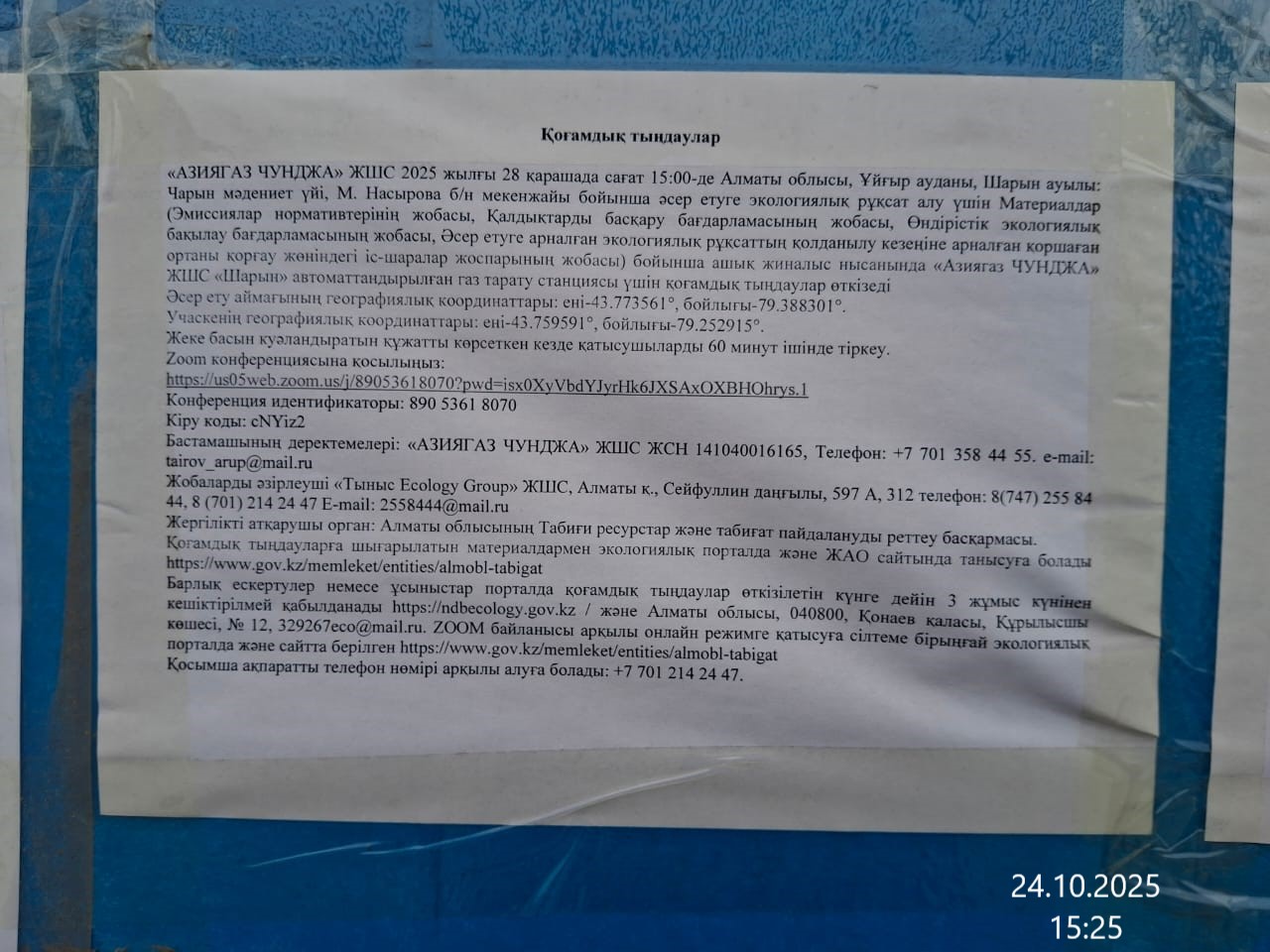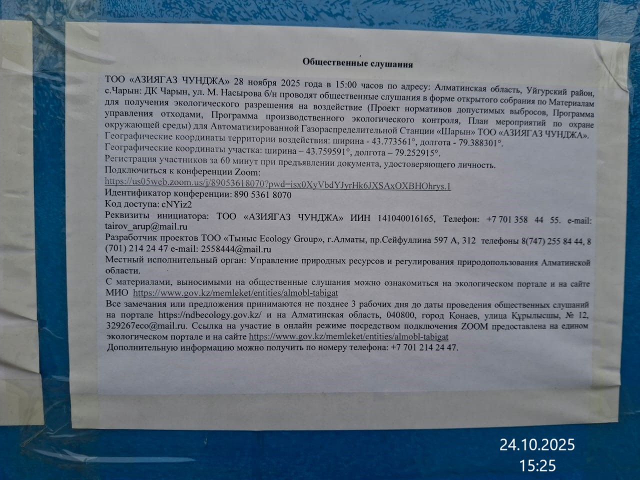 3. Общественные слушания организованны: Управление природных ресурсов и регулирования природопользования Алматинской области, 329267eco@mail.ru,