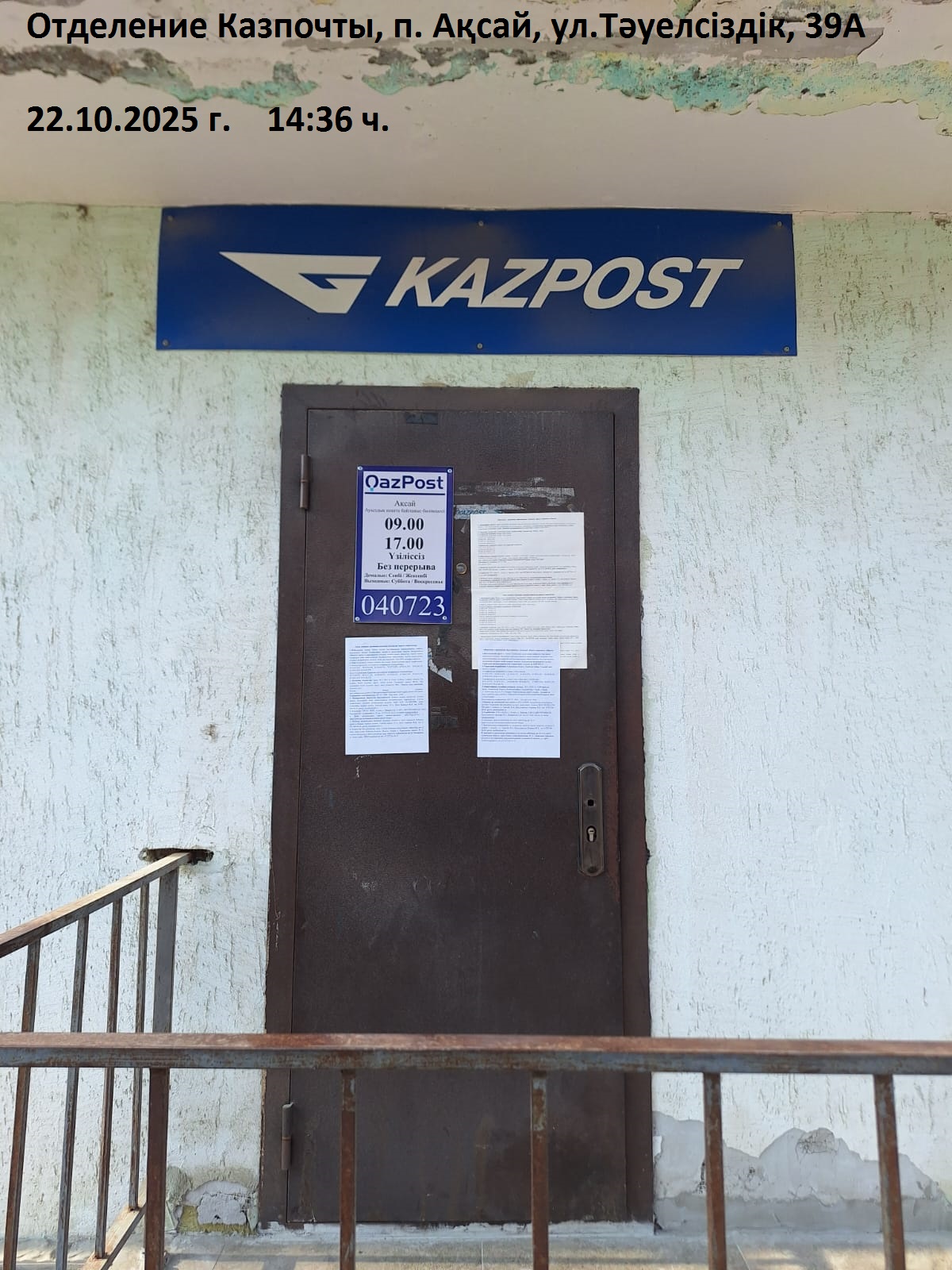 6.3. расположение мест, специально предназначенных для Размещения печатных объявлений (доски объявлений): Доска объявление в акимате п. Ақсай