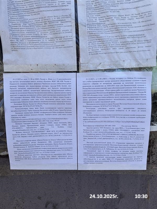 Объявление о проведении слушаний было опубликовано в установленные законодательством РК сроки и без нарушений требований, предусмотренных Правилами проведения общественных слушаний. Сроки, место и формат общественных слушаний соответствуют законодательным требованиям.