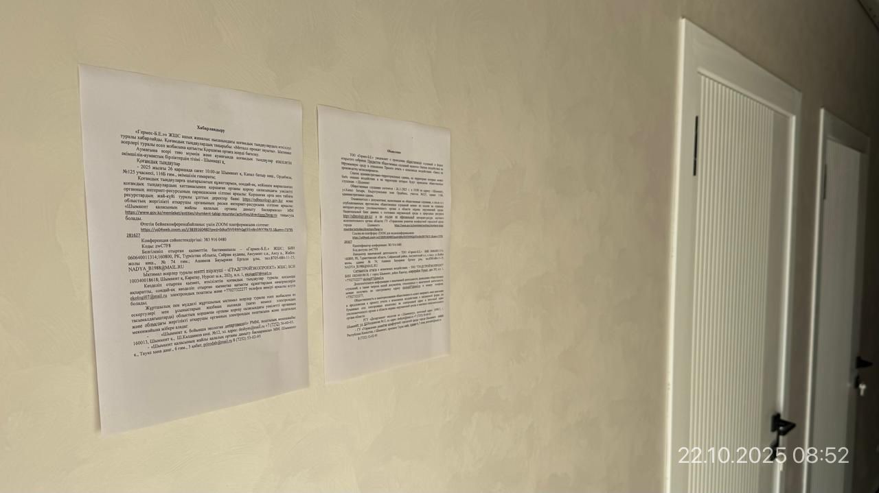 6.3. расположение мест, специально предназначенных для Размещения печатных объявлений (доски объявлений): Акимат Енбекшинского района
