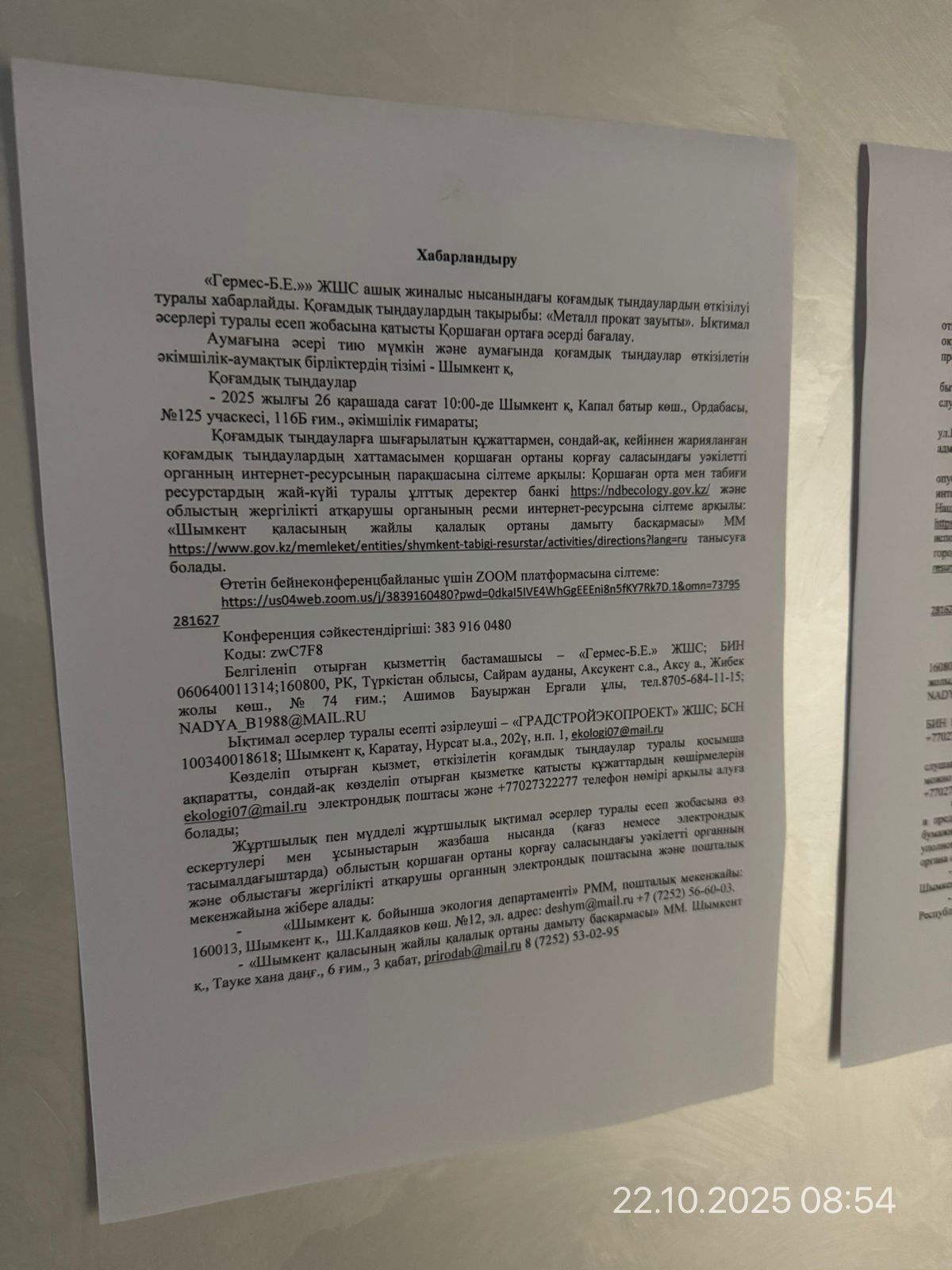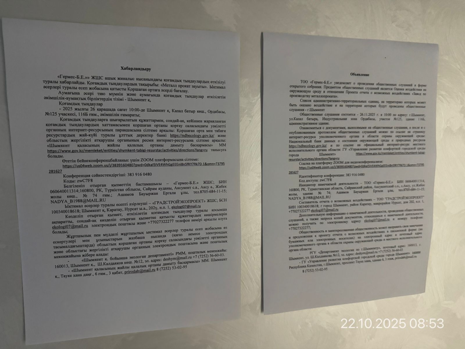 3. Общественные слушания организованны: Управление развития комфортной городской среды г.Шымкент, g.ermekbaeva@shymkent.gov.kz,