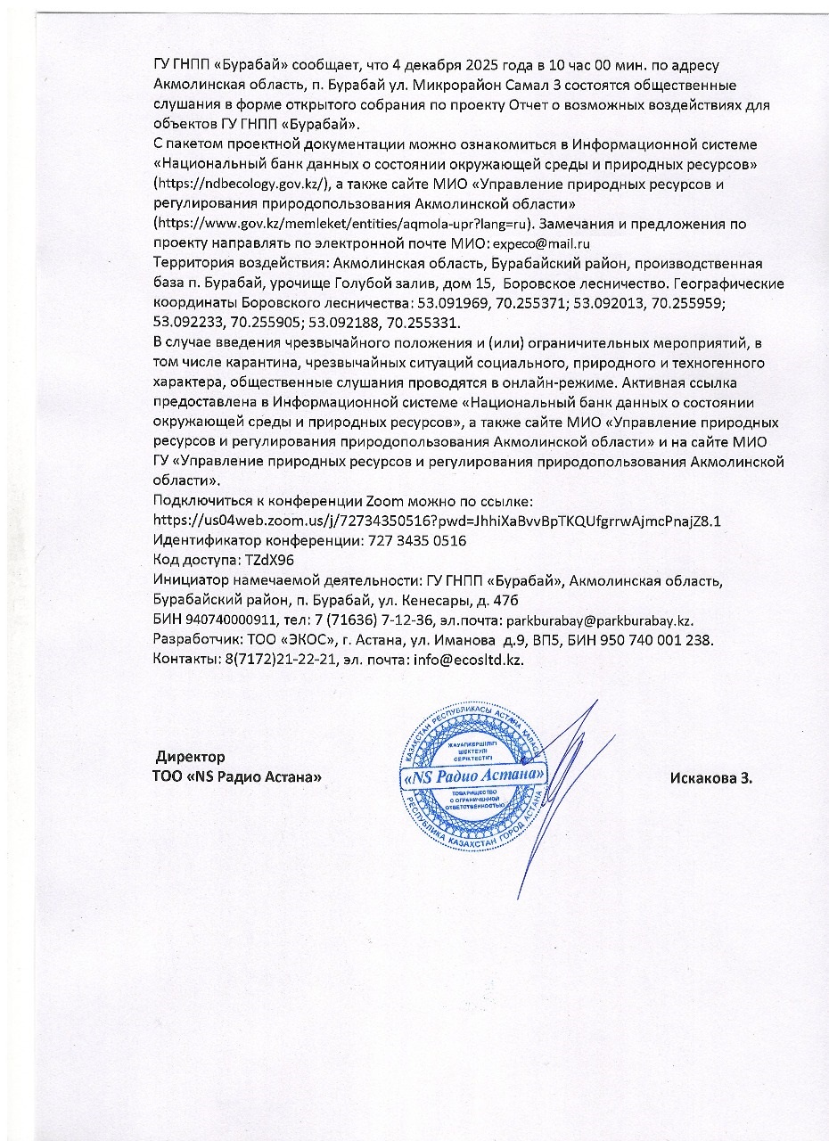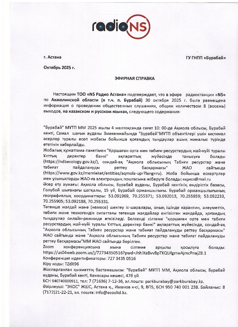 3. Общественные слушания организованны: Управление природных ресурсов и регулирования природопользования Акмолинской области, expeco@mail.ru,