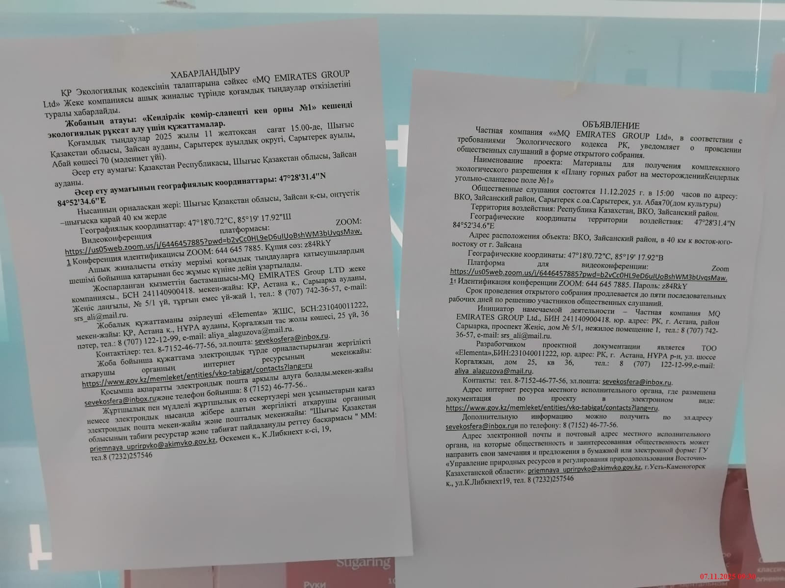 1.3. Контакты:srs_ali2@mail.ru; https://hearings.ndbecology.gov.kz/;
