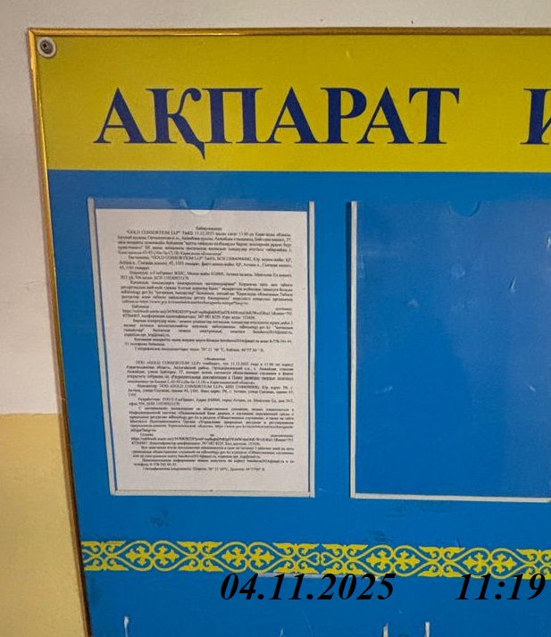 6.3. расположение мест, специально предназначенных для Размещения печатных объявлений (доски объявлений): Караганданская область, Актогайский район, Ортадересинский с.о., с. Акжайдак, станция Акжайдак, улица Байтерек, 37