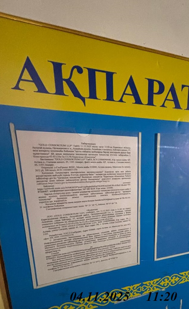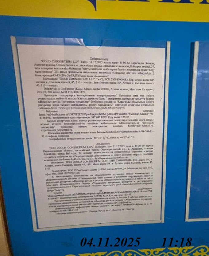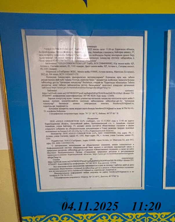 3. Общественные слушания организованны: Управление природных ресурсов и регулирования природопользования Карагандинской области, expertiza.upr_krg@mail.ru,
