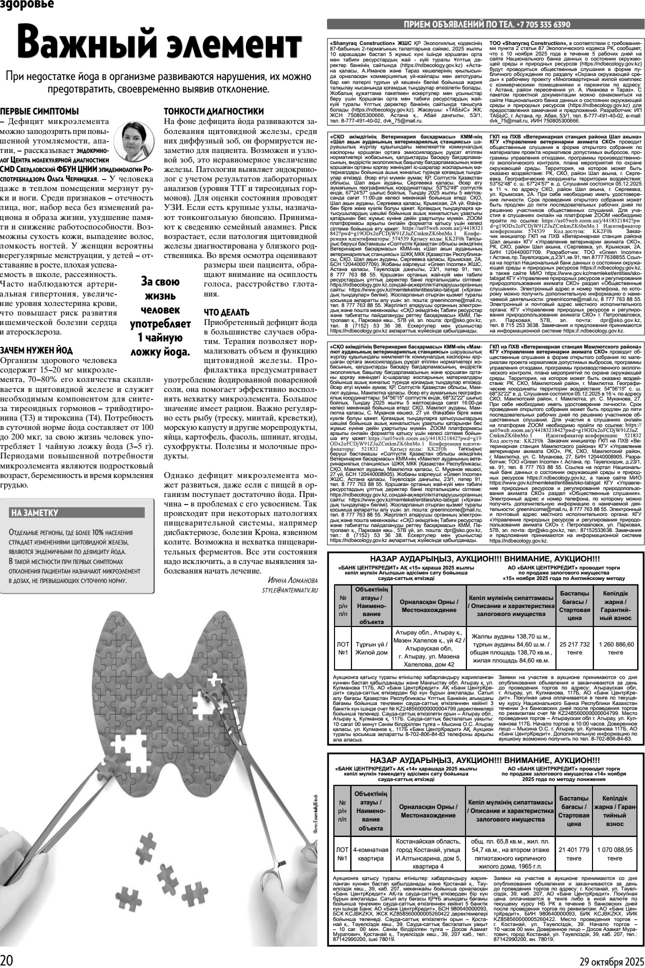 6.1. Наименование газеты, где будет размещено объявление: Антенна в Казахстане