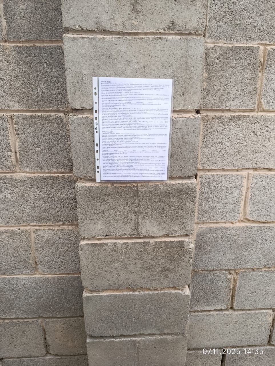 6.3. расположение мест, специально предназначенных для Размещения печатных объявлений (доски объявлений): Доска объявления Центр по разведению дрофы-красотки имени Халифы
