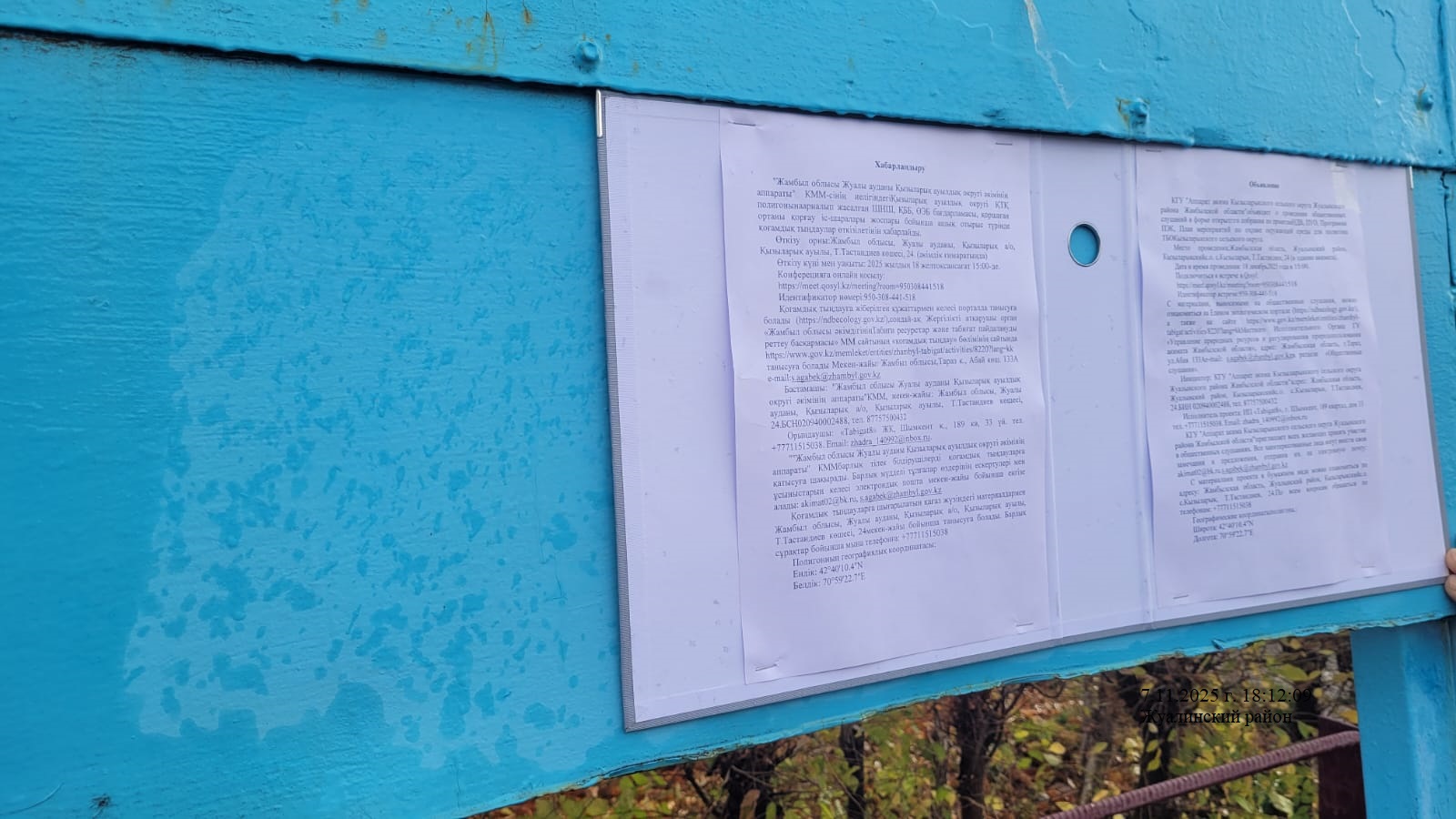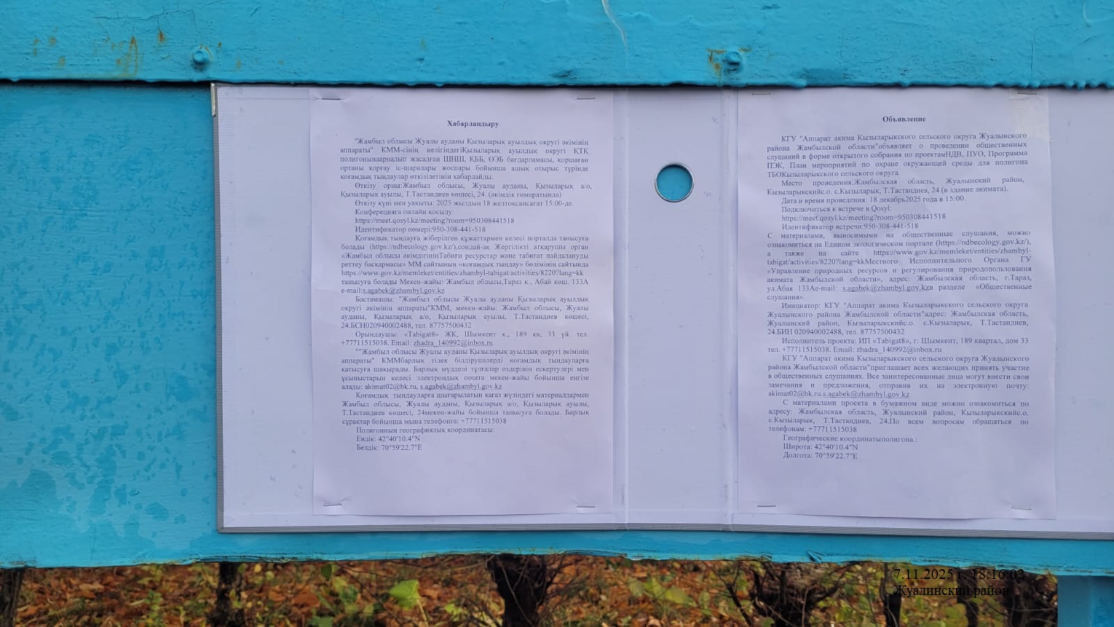 3. Общественные слушания организованны: Управление природных ресурсов и регулирования природопользования Жамбылской области, s.agabek@zhambyl.gov.kz,