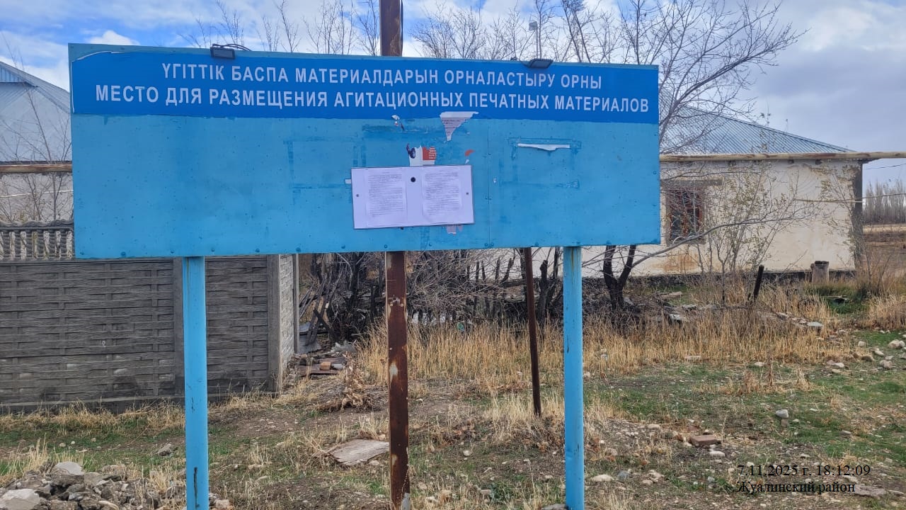 6.3. расположение мест, специально предназначенных для Размещения печатных объявлений (доски объявлений): в здание акимата Кызыларыкского с/о