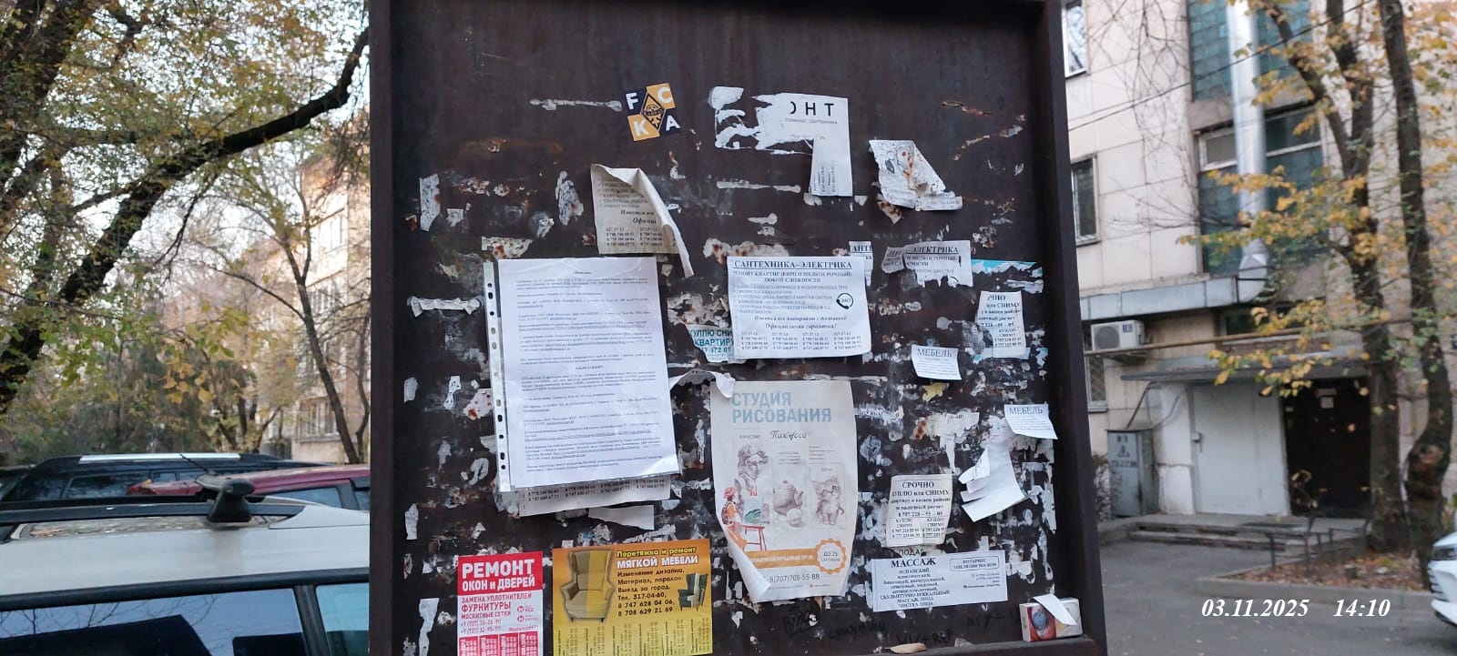 6.3. расположение мест, специально предназначенных для Размещения печатных объявлений (доски объявлений): рядом казпочта, магазин и др.