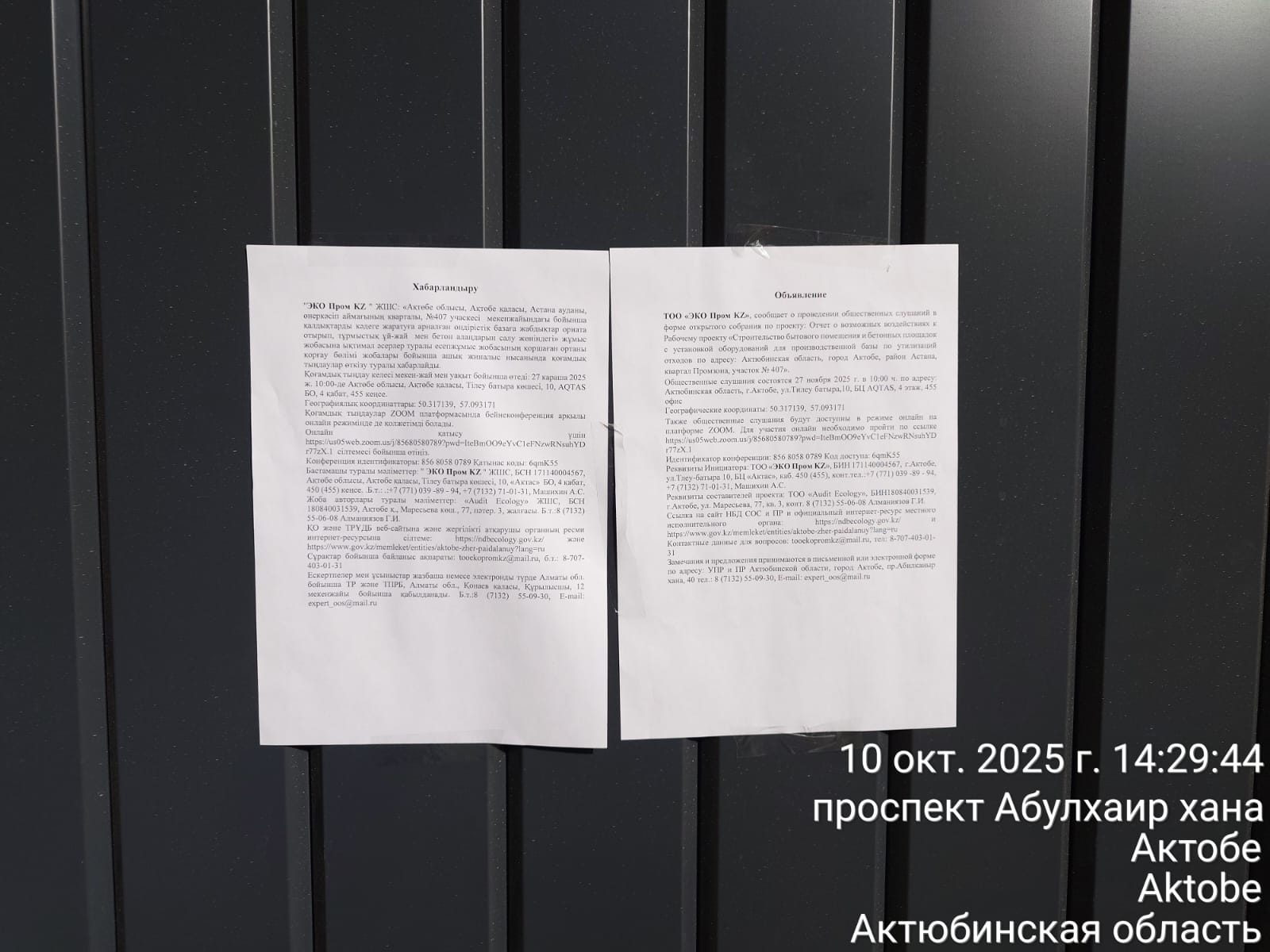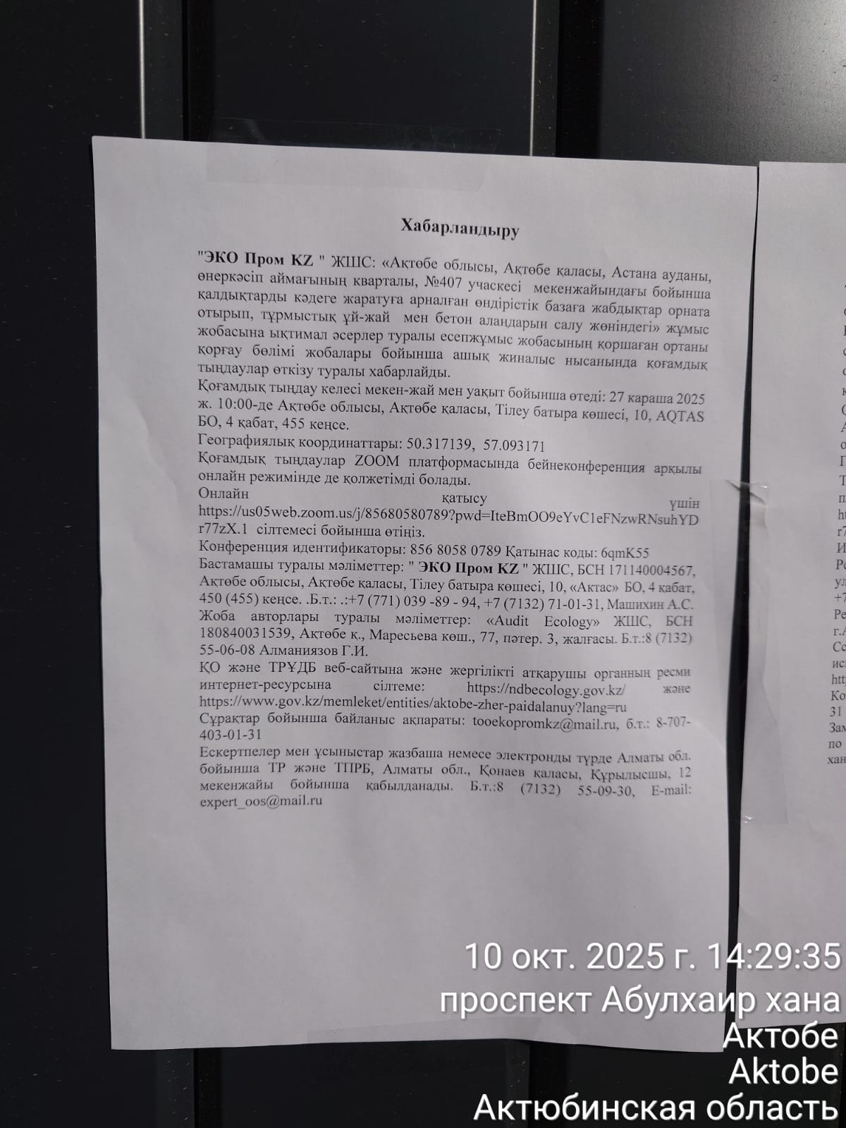 3. Общественные слушания организованны: Управление природных ресурсов и регулирования природопользования Актюбинской области, expert_oos@mail.ru,