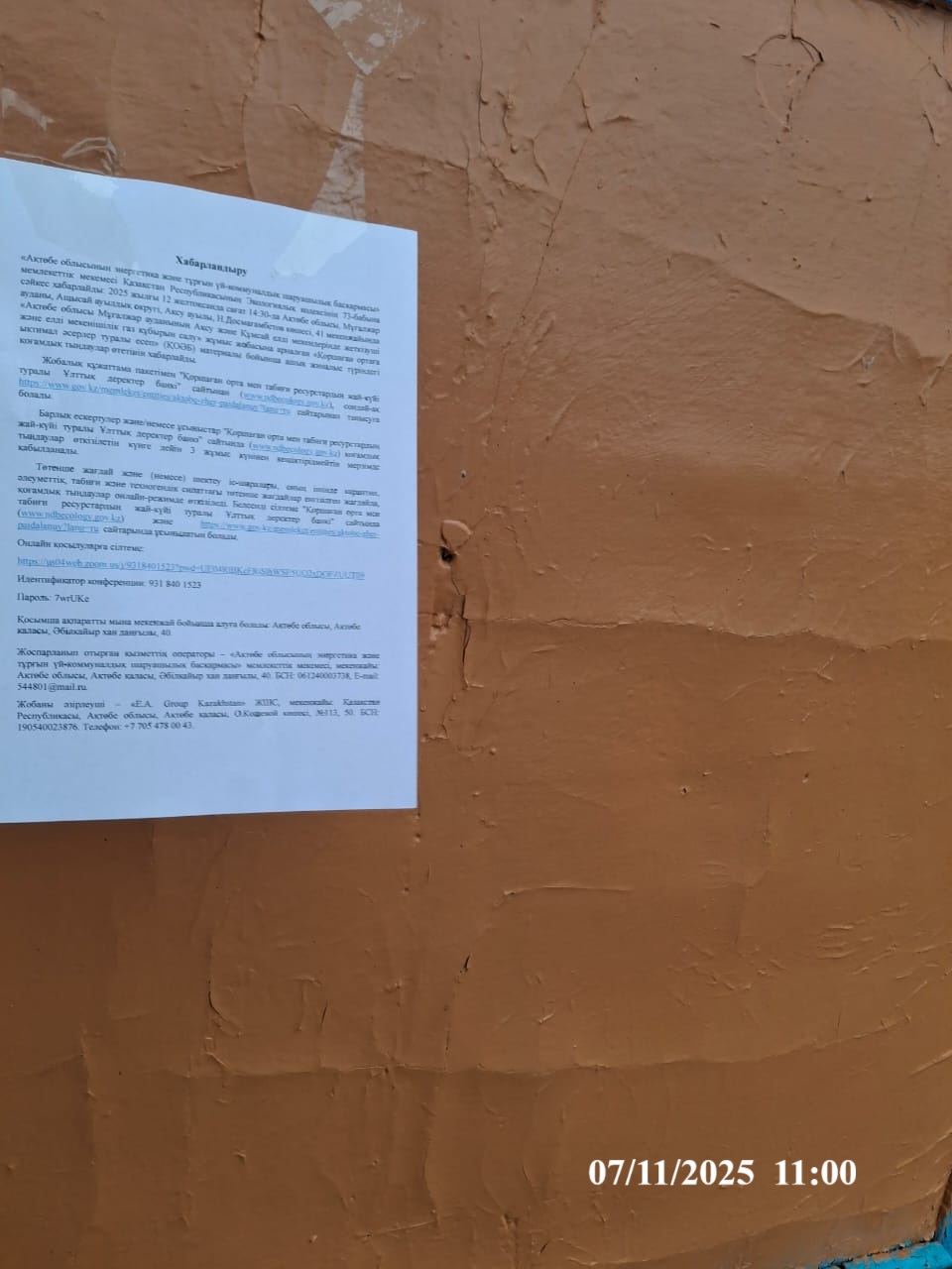 3. Общественные слушания организованны: Управление природных ресурсов и регулирования природопользования Актюбинской области, expert_oos@mail.ru,