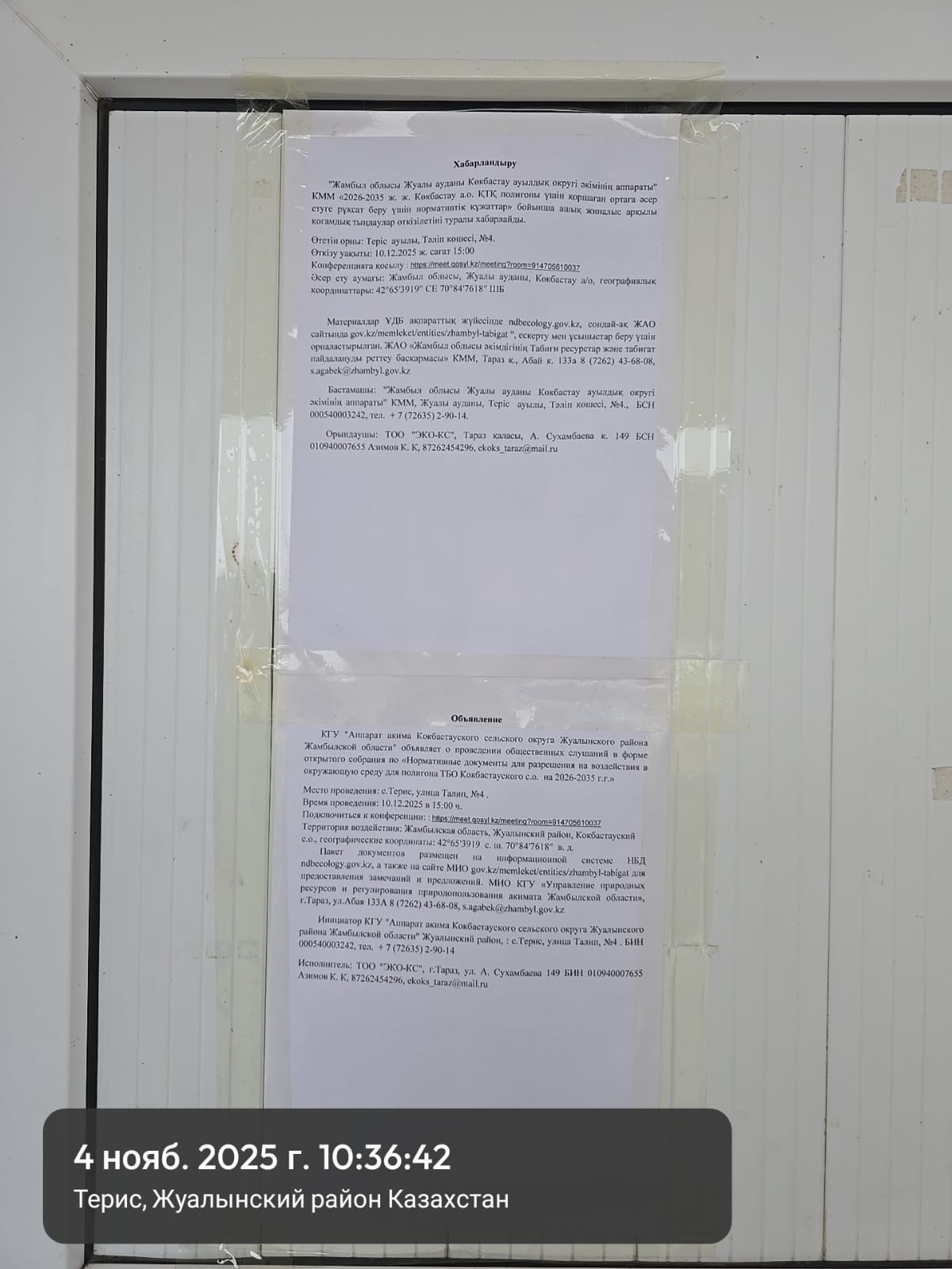 3. Общественные слушания организованны: Управление природных ресурсов и регулирования природопользования Жамбылской области, s.agabek@zhambyl.gov.kz,