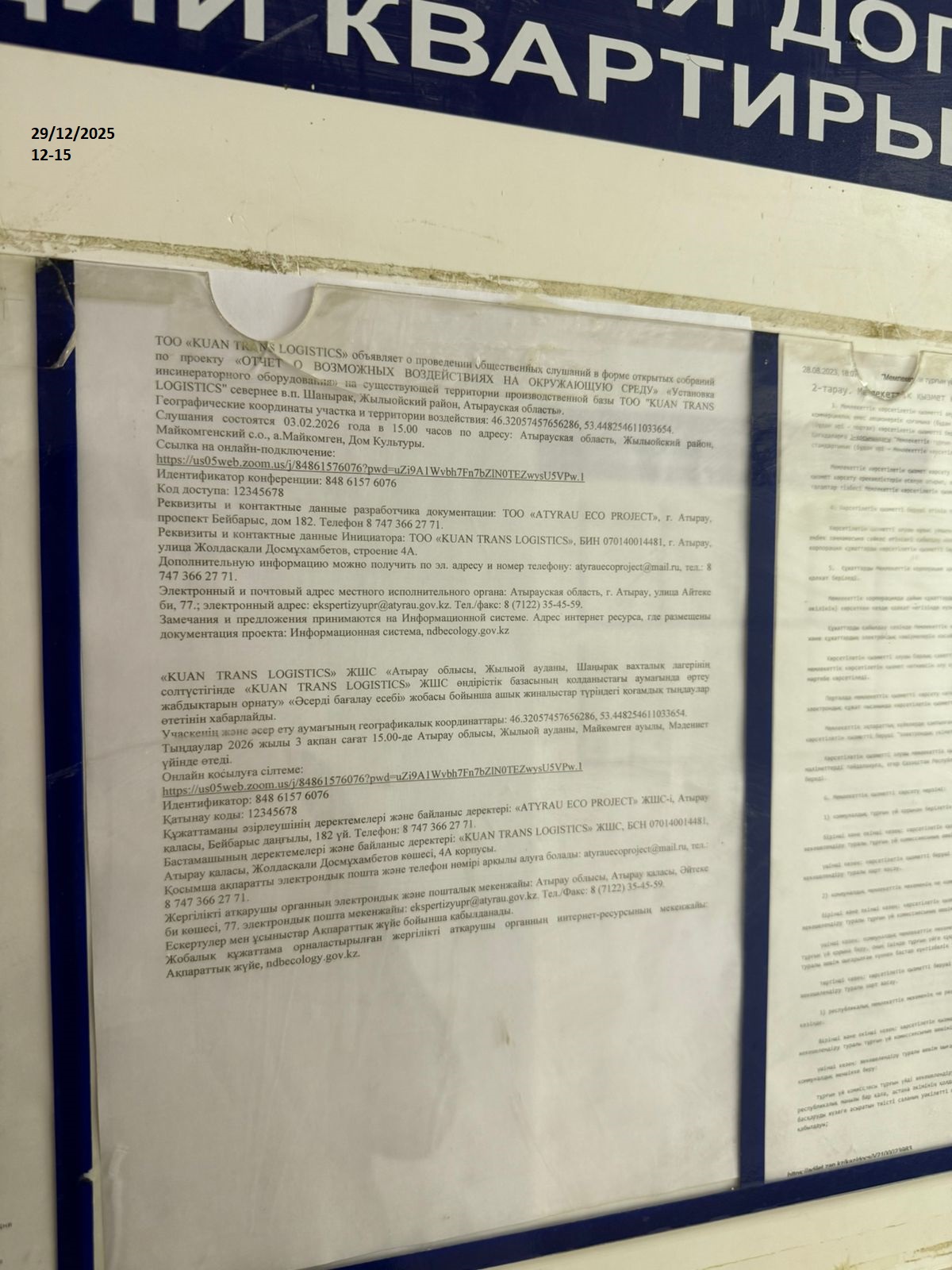 3. Общественные слушания организованны: Управление природных ресурсов и регулирования природопользования Атырауской области, atr.priroda@atyrau.gov.kz,