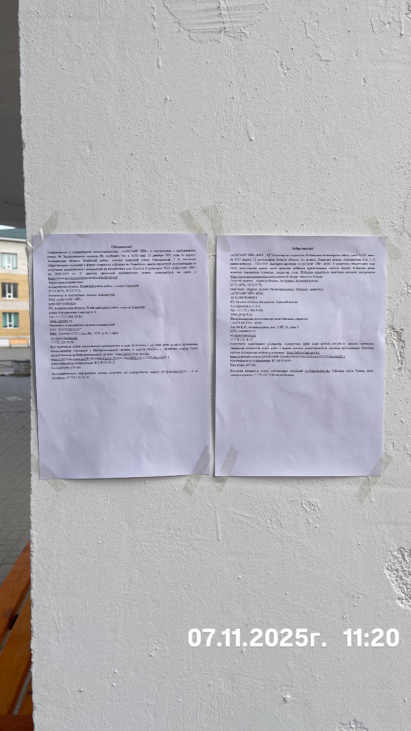 6.3. расположение мест, специально предназначенных для Размещения печатных объявлений (доски объявлений): Алматинская область, Илийский район, поселок Боралдай улица Аэродромная 2 А