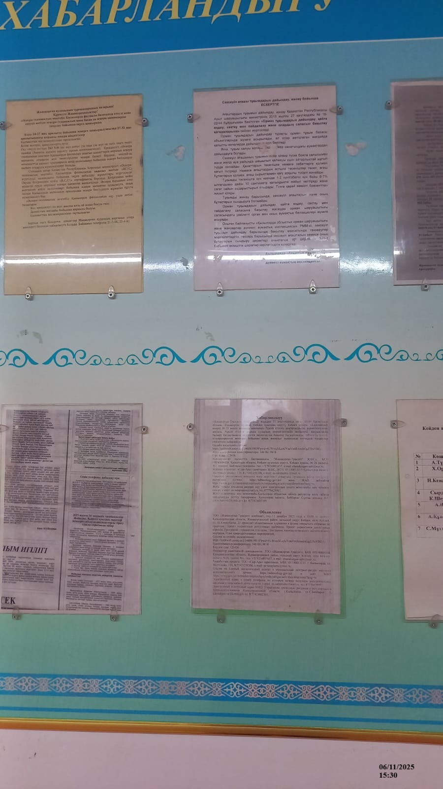 6.3. расположение мест, специально предназначенных для Размещения печатных объявлений (доски объявлений): Административные здания с.Кейден