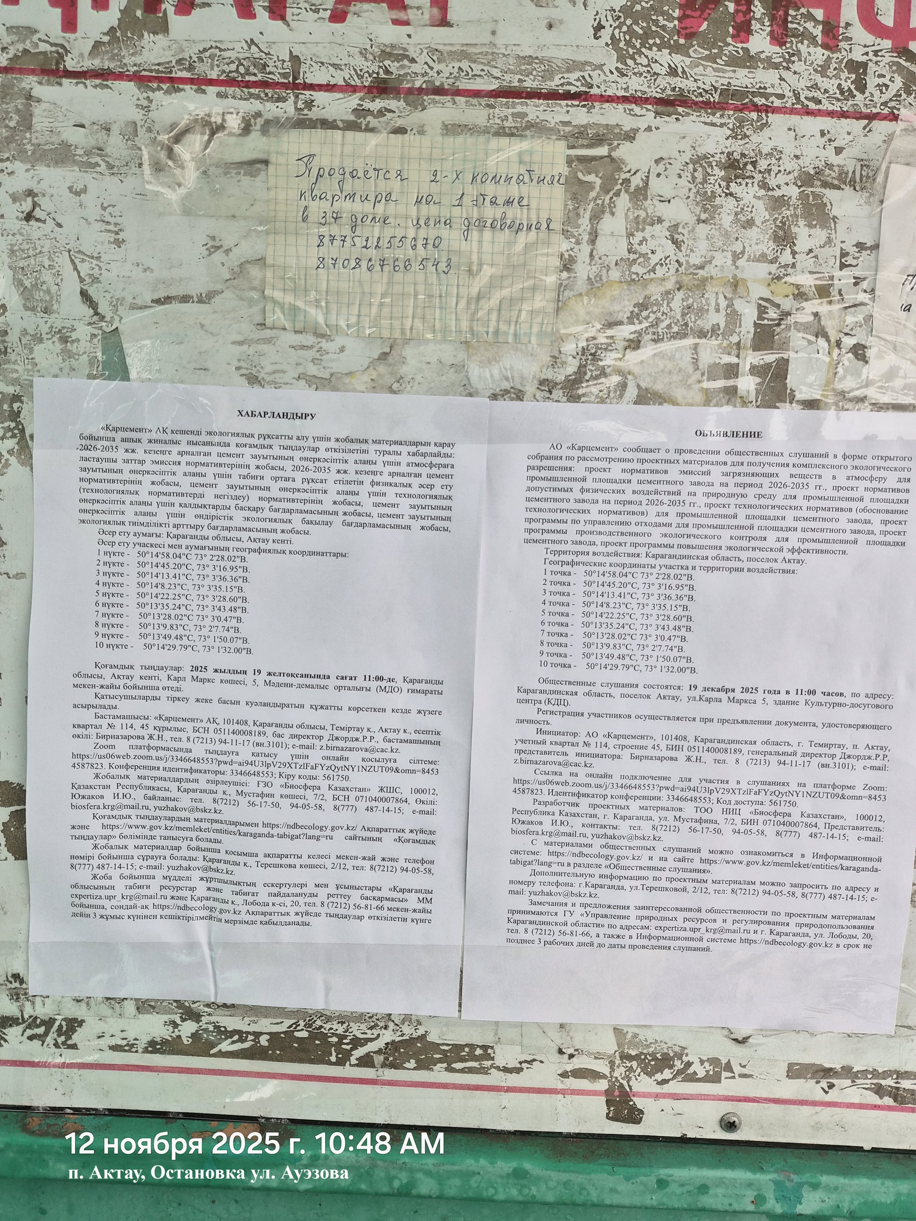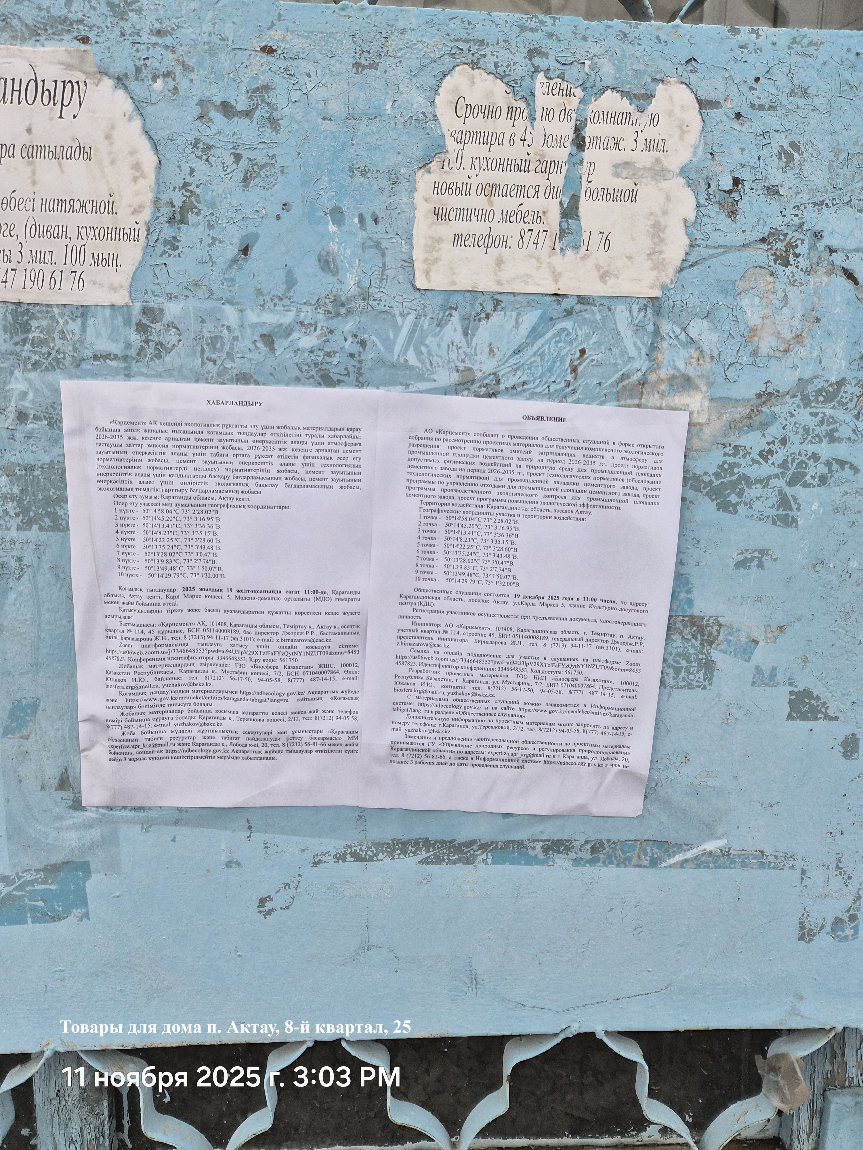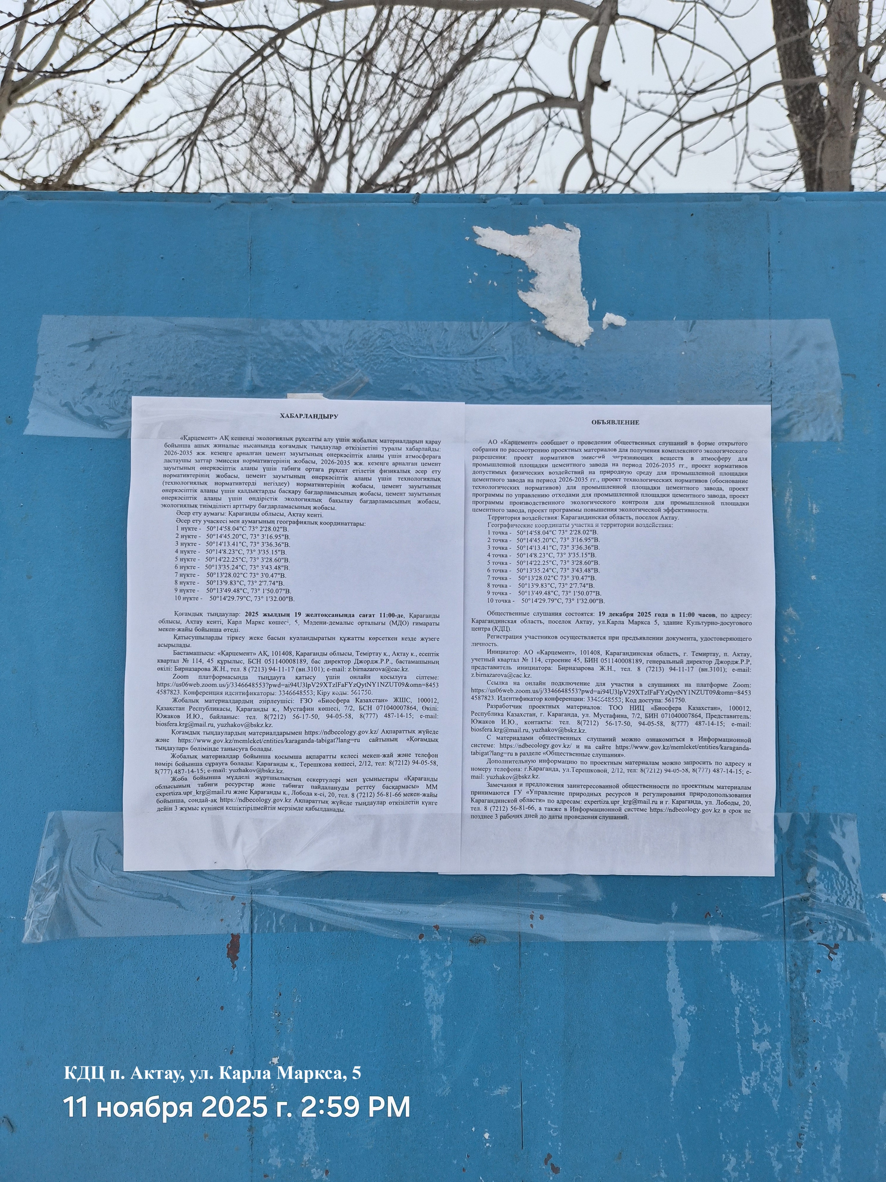 3. Общественные слушания организованны: Управление природных ресурсов и регулирования природопользования Карагандинской области, expertiza.upr_krg@mail.ru,