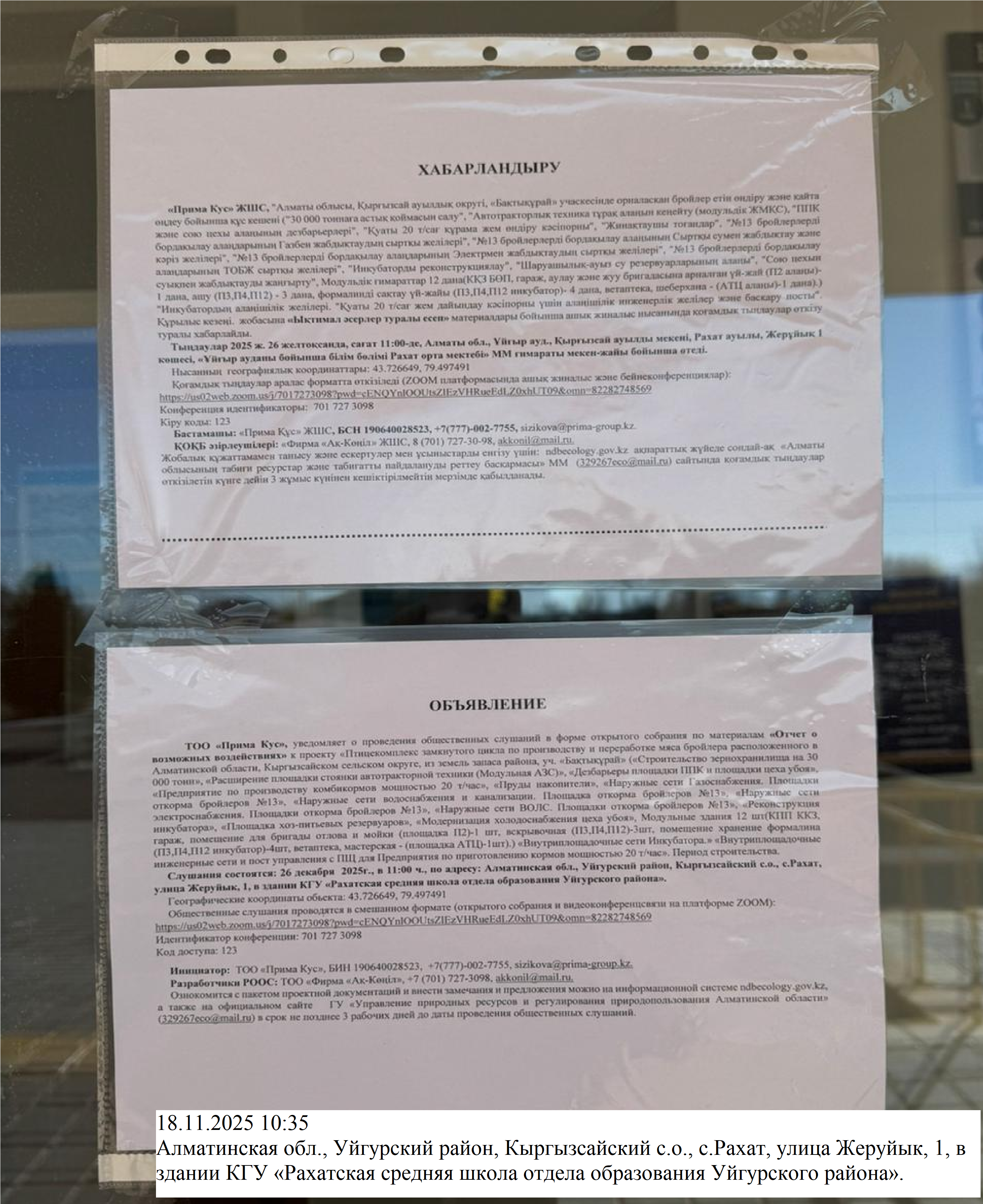 3. Общественные слушания организованны: Управление природных ресурсов и регулирования природопользования Алматинской области, 329267eco@mail.ru,