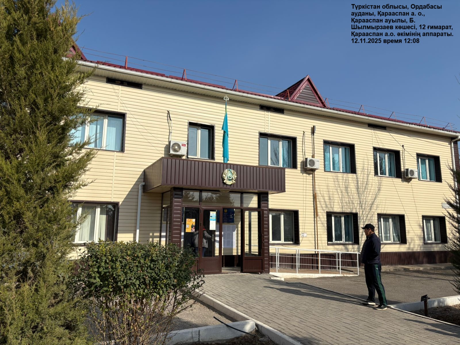 1.2. Место проведения: Туркестанская область, Ордабасынский район, Карааспанский с.о., с. Карааспан, улица Б. Шылмырзаев 12, аппарат акима с.о. Карааспан.