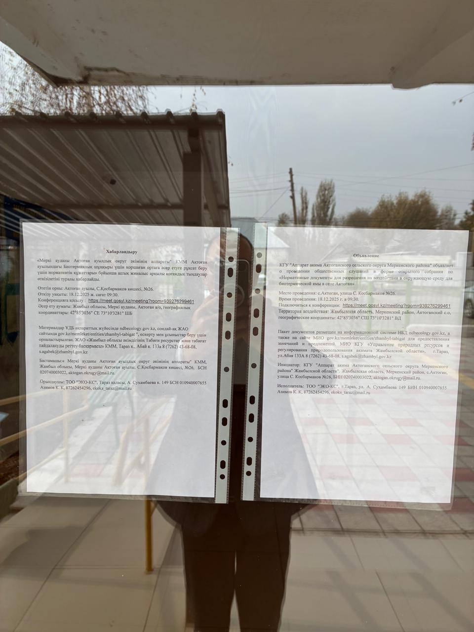 3. Общественные слушания организованны: Управление природных ресурсов и регулирования природопользования Жамбылской области, s.agabek@zhambyl.gov.kz,