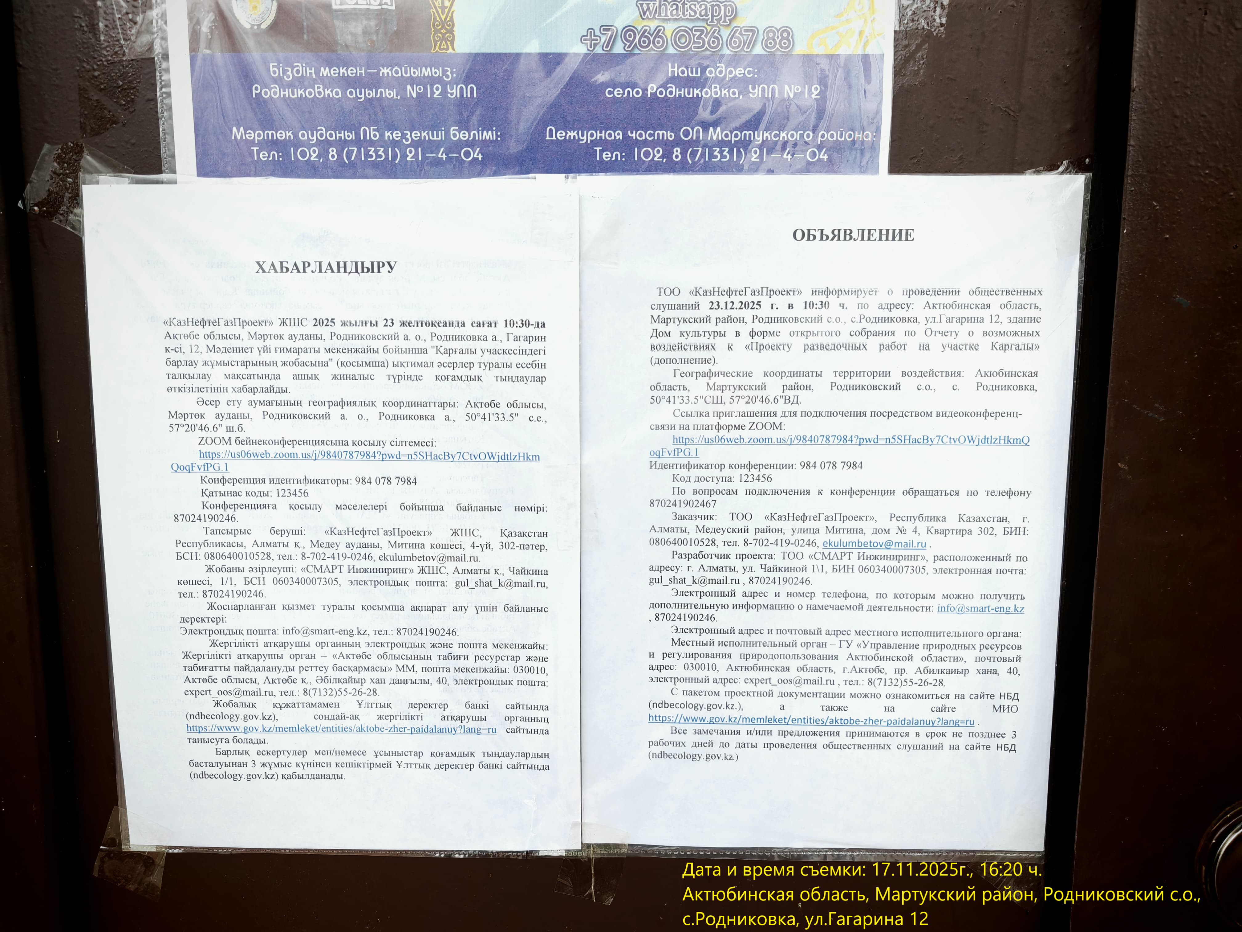 3. Общественные слушания организованны: Управление природных ресурсов и регулирования природопользования Актюбинской области, expert_oos@mail.ru,