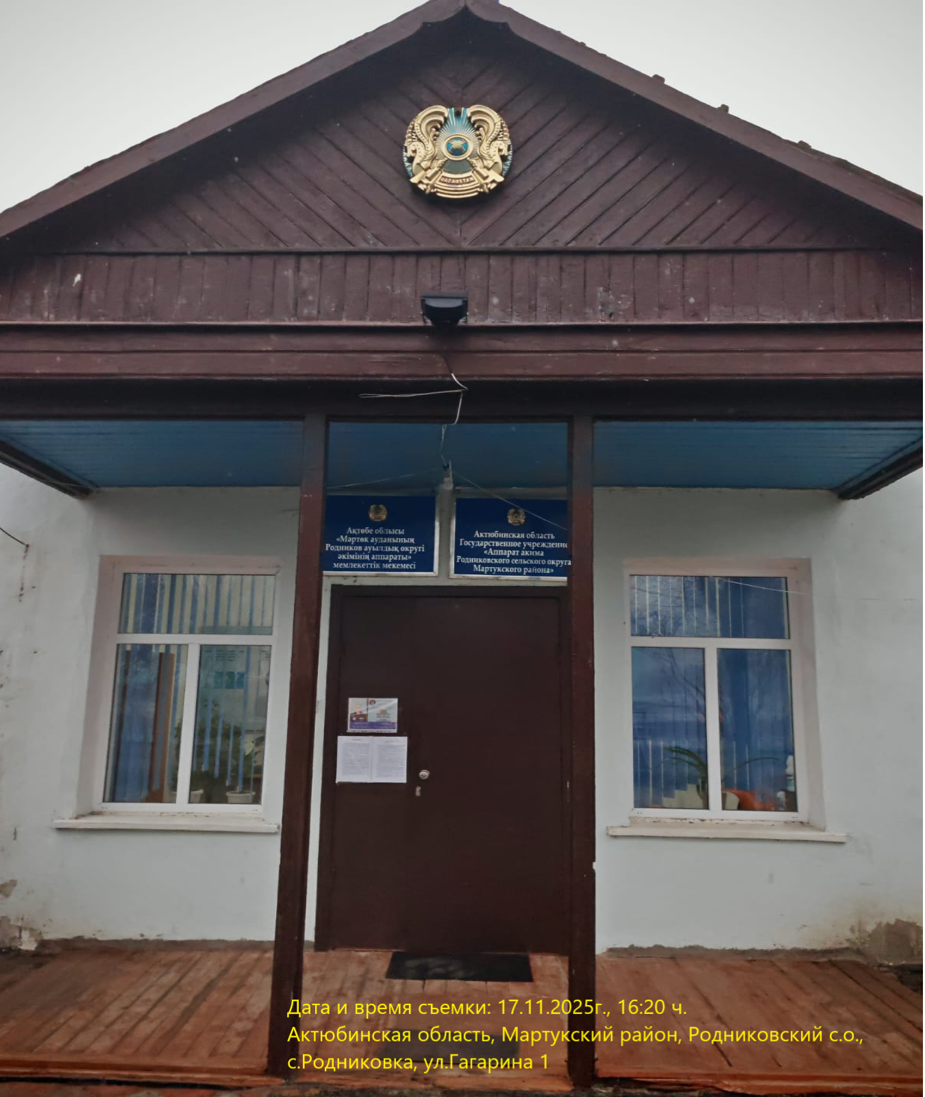 6.3. расположение мест, специально предназначенных для Размещения печатных объявлений (доски объявлений): Актюбинская область, Мартукский район, Родниковский с.о., с.Родниковка, ул.Гагарина 12