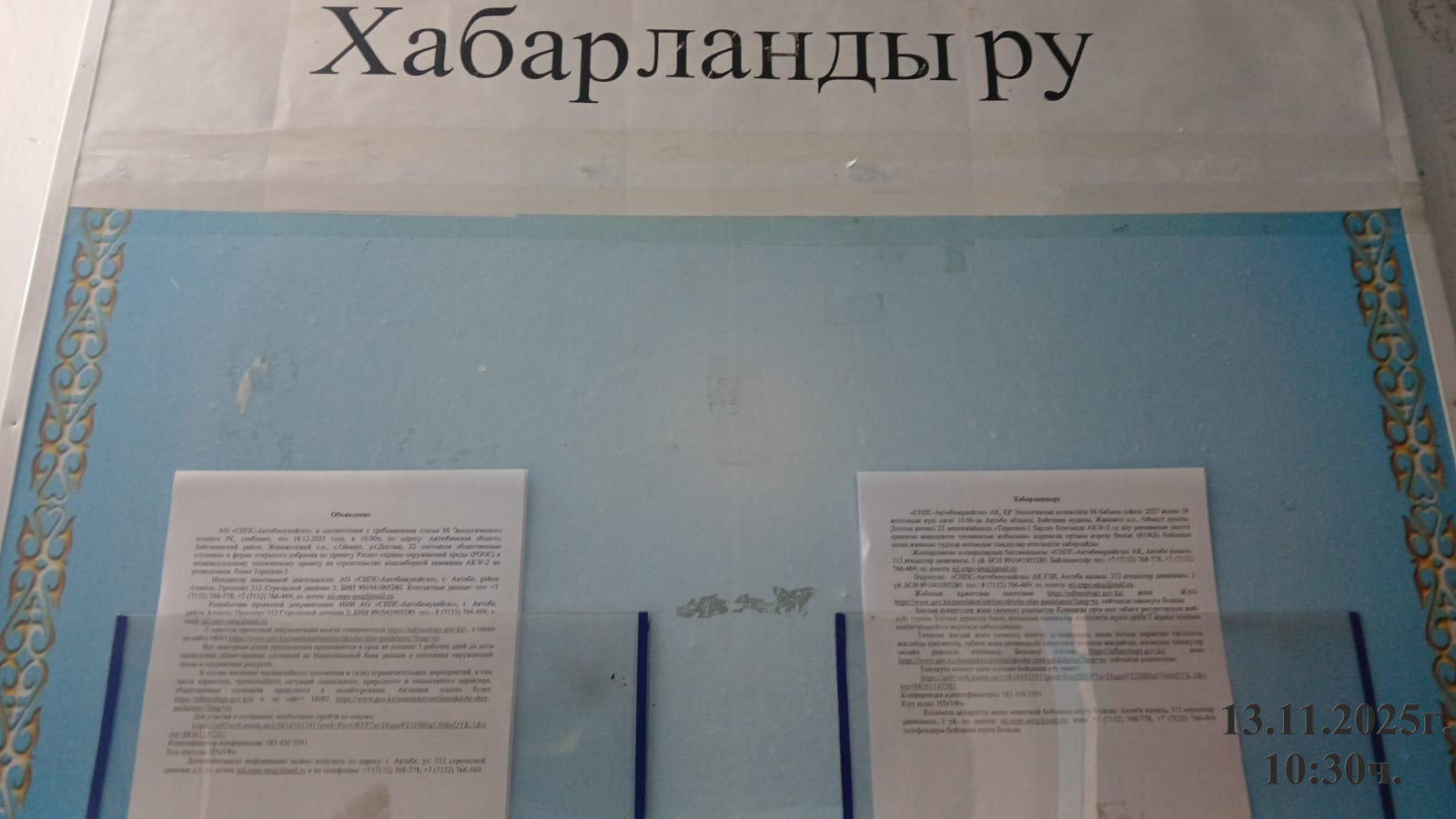 6. Объявление о проведении общественных слушаний на казахском и русском языках будет распространено следующими способами: