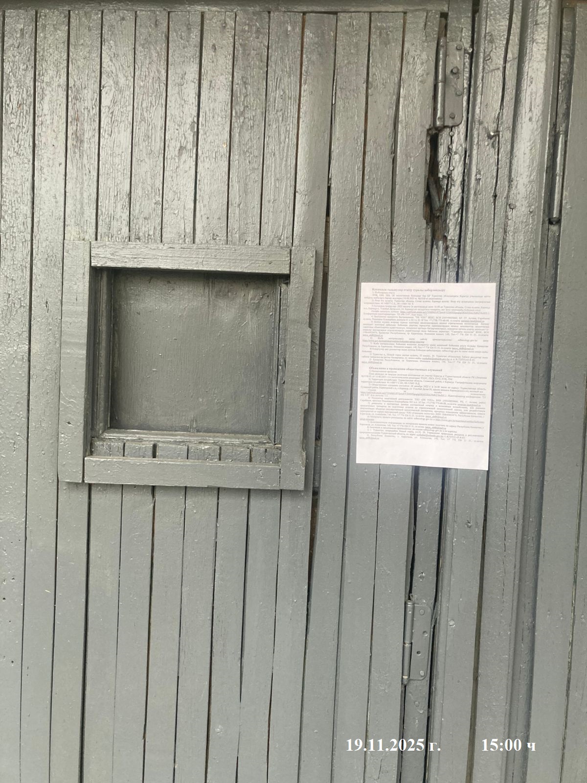 6.3. расположение мест, специально предназначенных для Размещения печатных объявлений (доски объявлений): Туркестанская область, Сузакский район, Каракурский с.о., с.Каракур, на здании акимата.