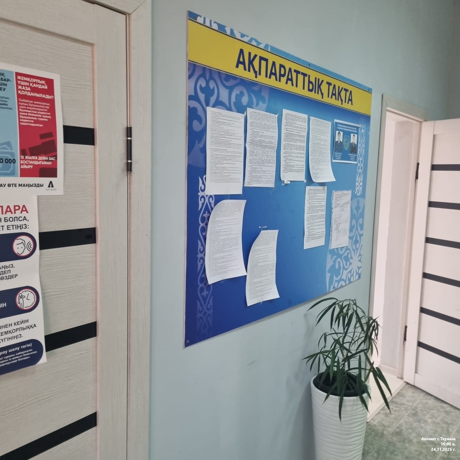 6.3. расположение мест, специально предназначенных для Размещения печатных объявлений (доски объявлений): ГУ «Аппарат акима села Таушык»