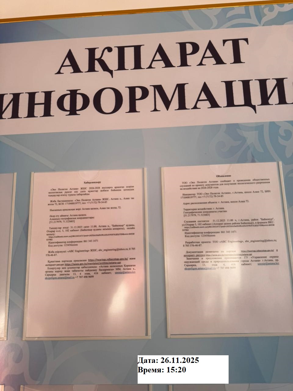 3. Общественные слушания организованны: Акимат Нур-Султана, uoosip@astana.kz,