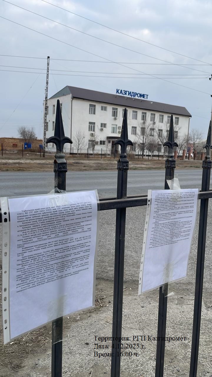 6.3. расположение мест, специально предназначенных для Размещения печатных объявлений (доски объявлений): г. Атырау, Филиал РГП «Казгидромет» по Атырауской области по адресу: ул. Талгата Бигельдинова, 10А, Гостиница "Адал" ул. Талгата Бигельдинова 51, Атырауская областная инфекционная больница №2 по адресу: проспект Султана Бейбарыса, 412