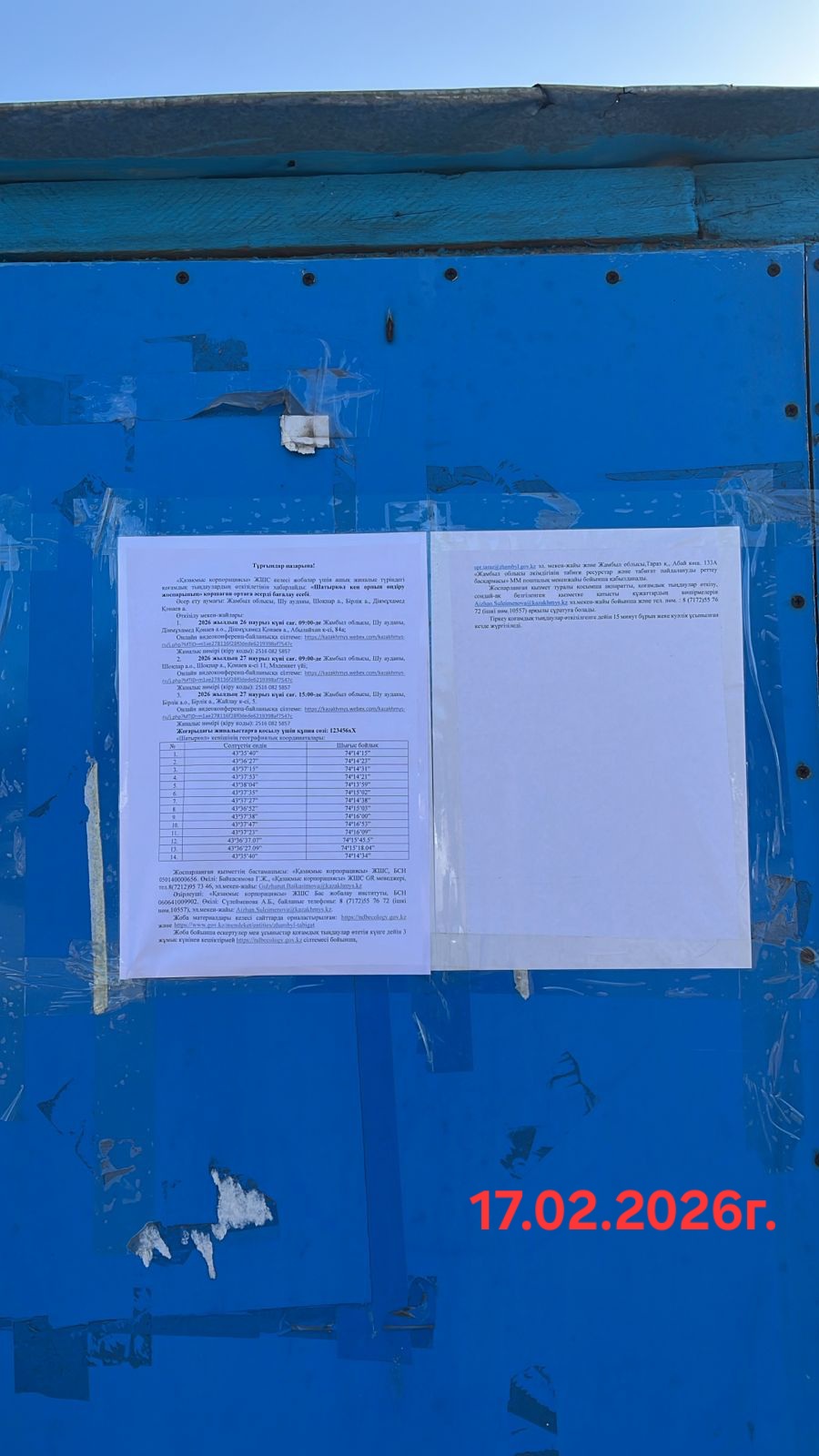 3. Общественные слушания организованны: Управление природных ресурсов и регулирования природопользования Жамбылской области, s.agabek@zhambyl.gov.kz,