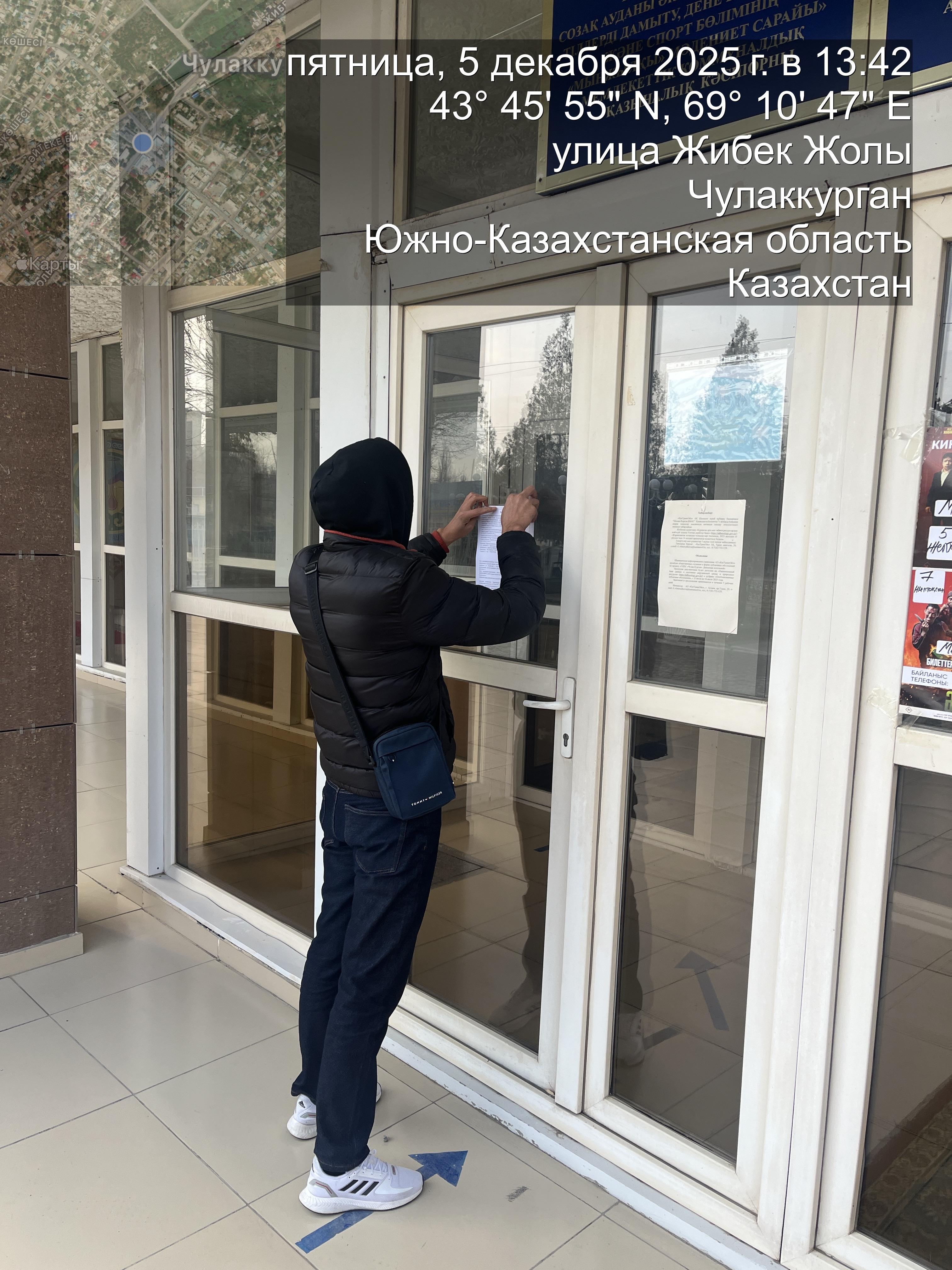 1.2. Место проведения: Туркестанская область, Сузакский район, Таукентская п.а., п.Таукент, МИКРОРАЙОН 1, Д.45А (здание акимата)