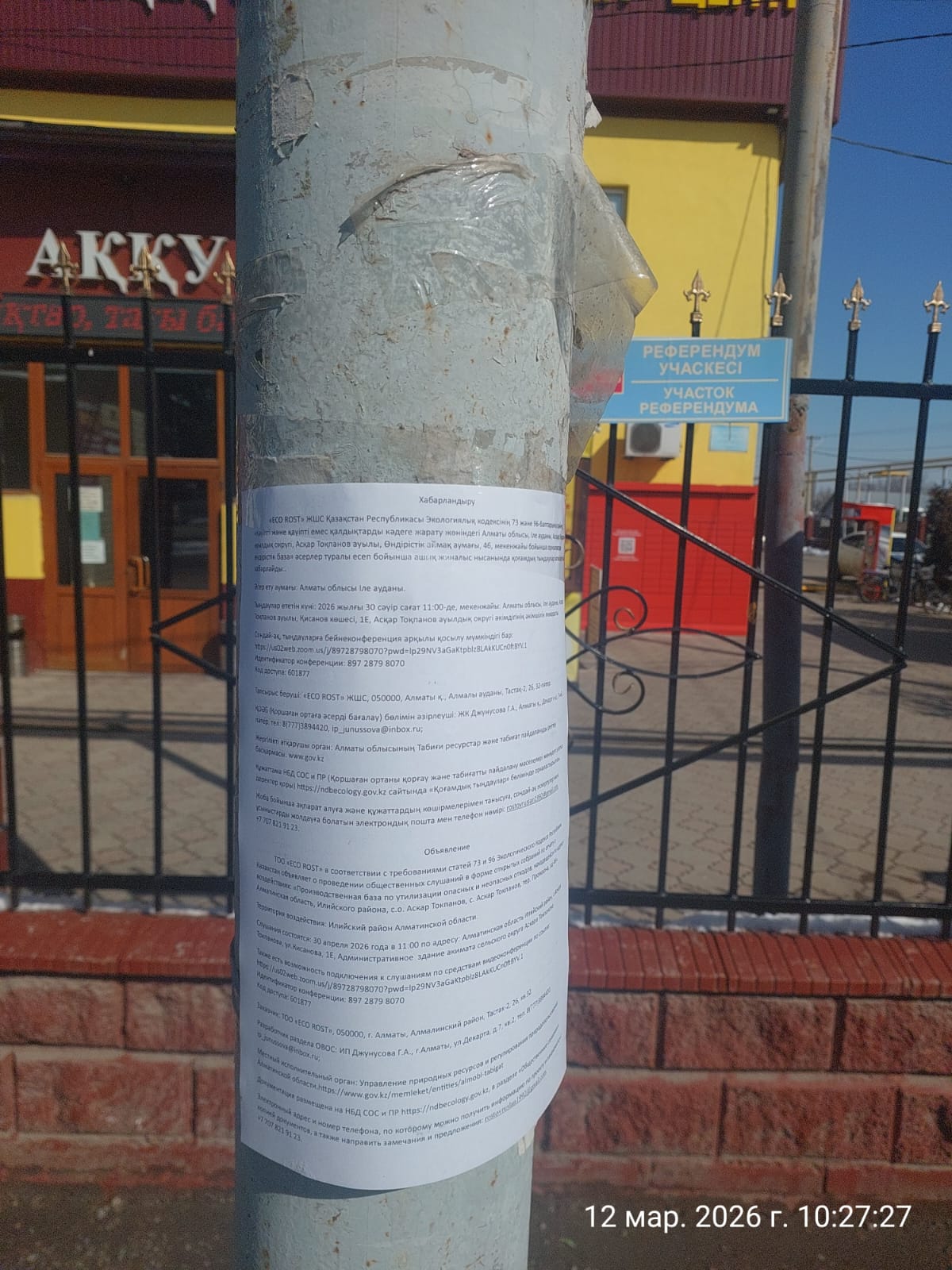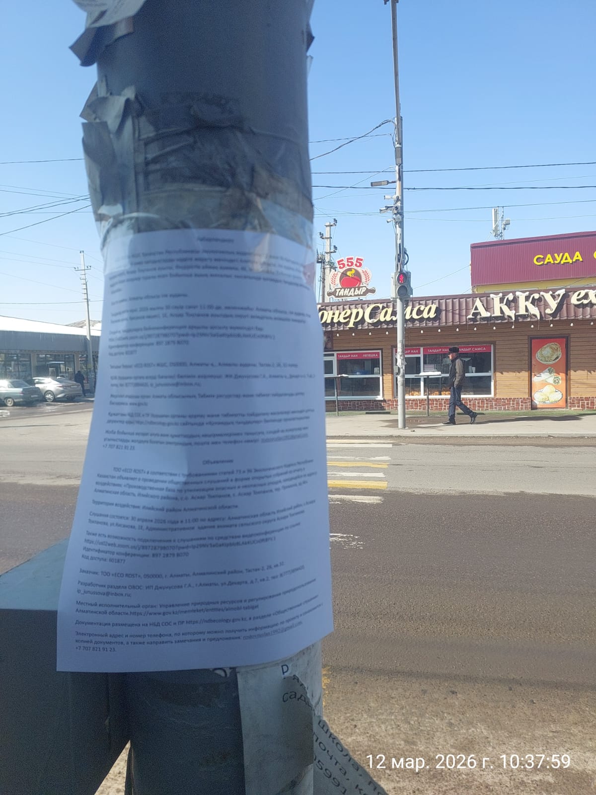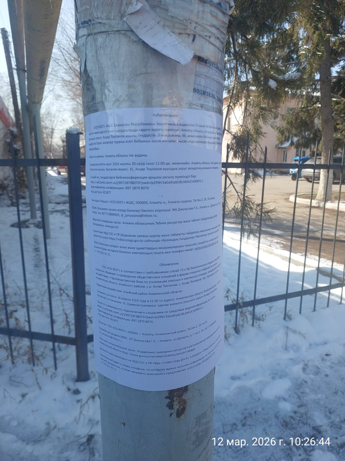 3. Общественные слушания организованны: Управление природных ресурсов и регулирования природопользования Алматинской области, 329267eco@mail.ru,