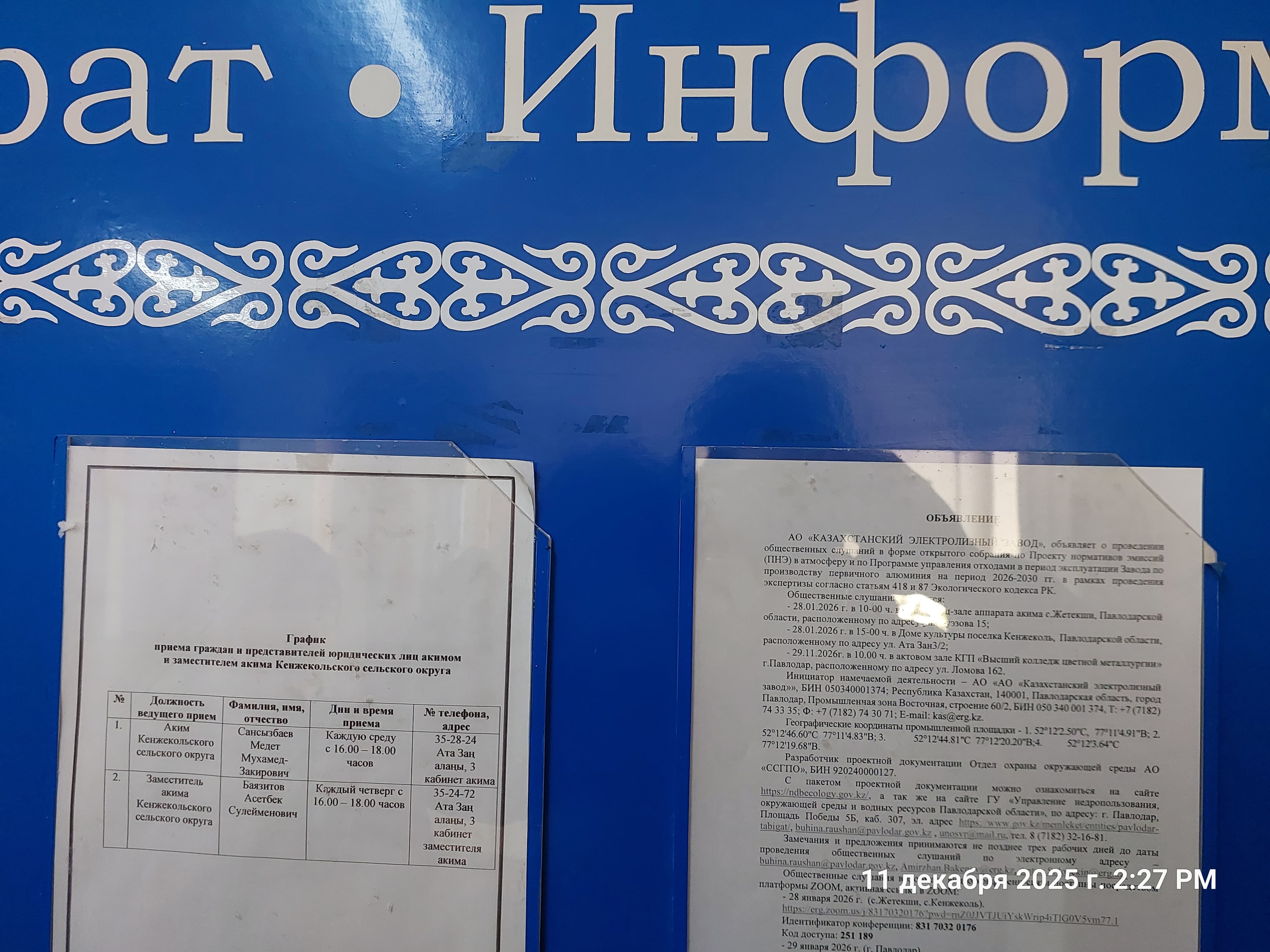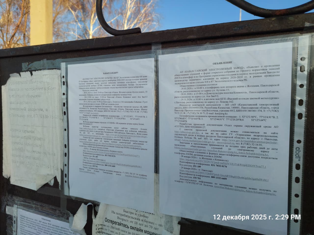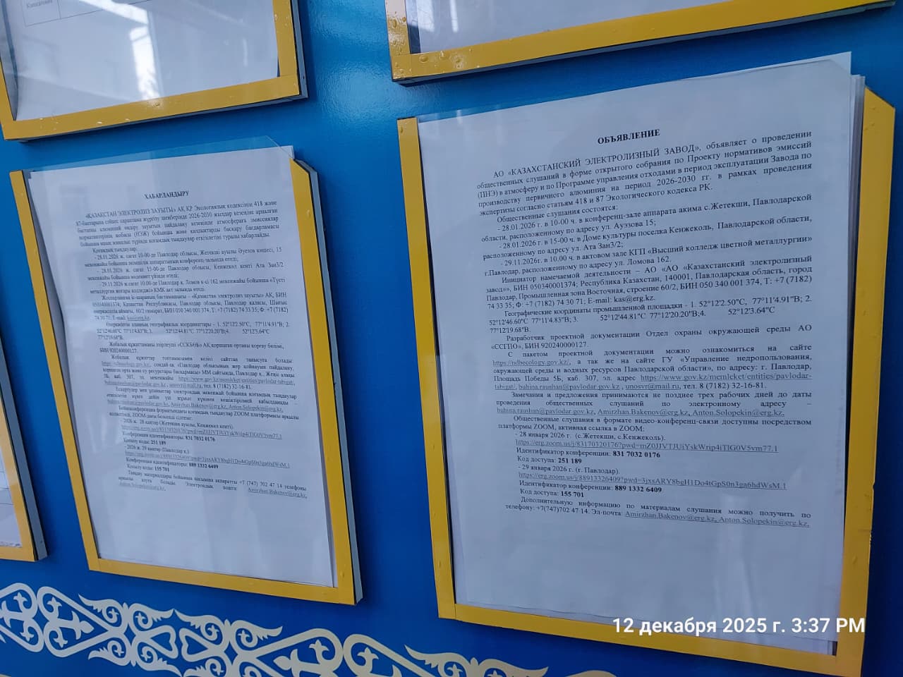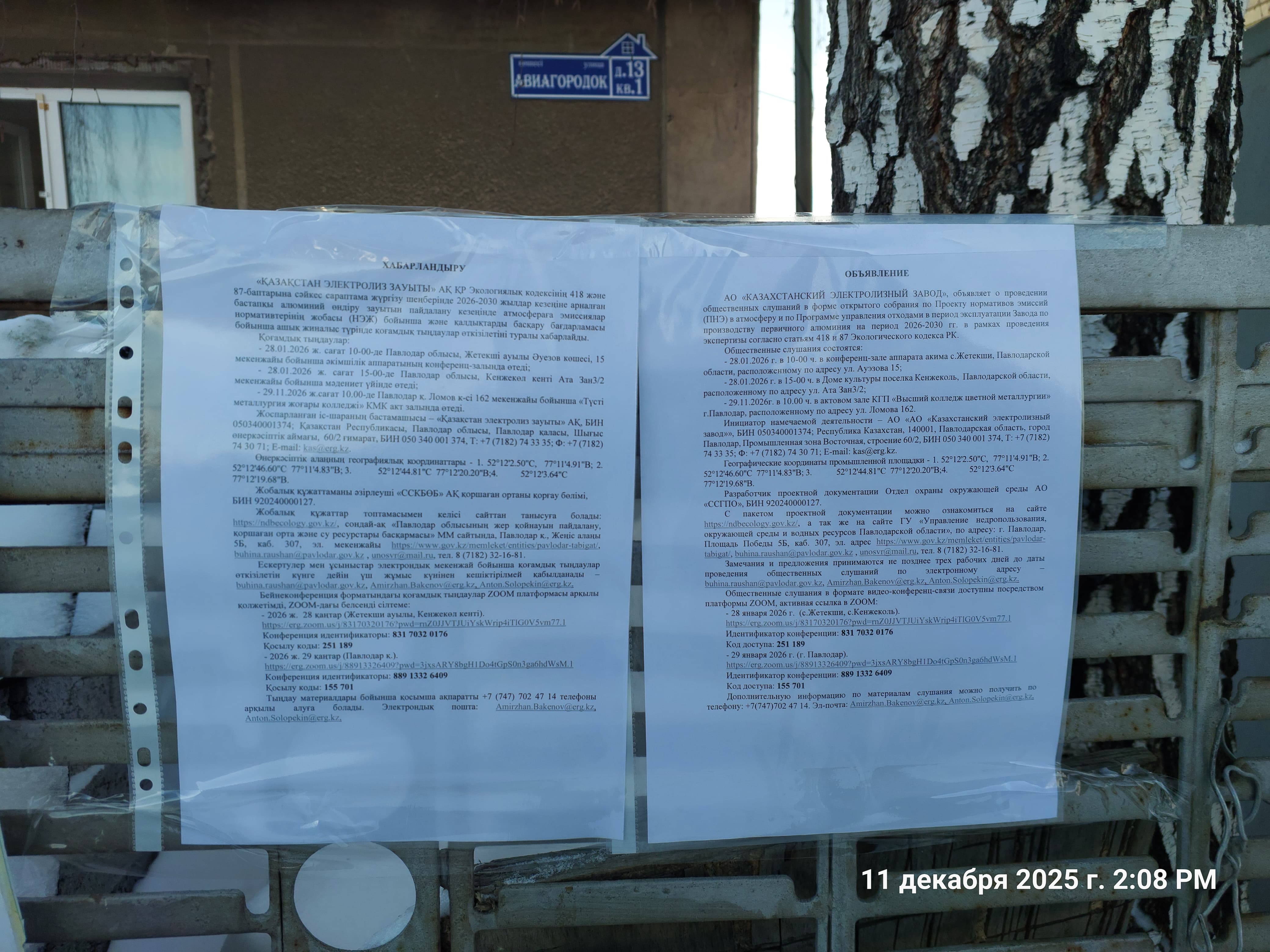4. Повестка дня общественных слушаний: АО «КАЗАХСТАНСКИЙ ЭЛЕКТРОЛИЗНЫЙ ЗАВОД», сообщает о проведении общественных слушаний в форме открытого собрания по Проекту нормативов эмиссий (ПНЭ) в атмосферу и по Программе управления отходами в период эксплуатации Завода по производству первичного алюминия на период 2026-2030 гг. в рамках проведения экспертизы согласно статьям 418 и 87 Экологического кодекса РК.