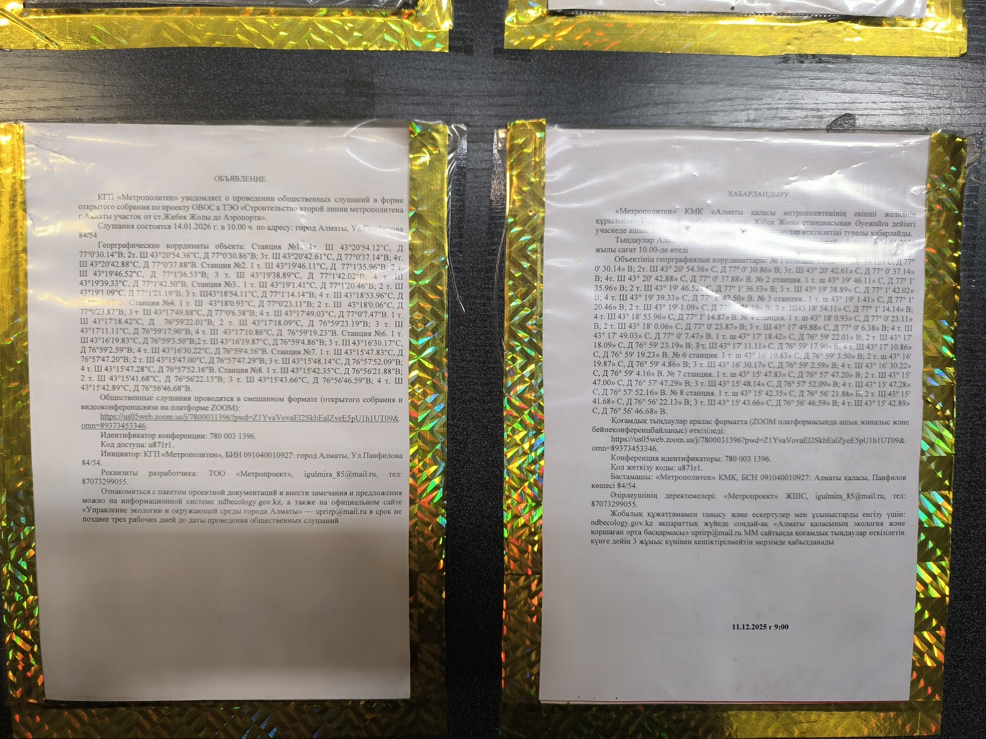 6. Объявление о проведении общественных слушаний на казахском и русском языках будет распространено следующими способами: