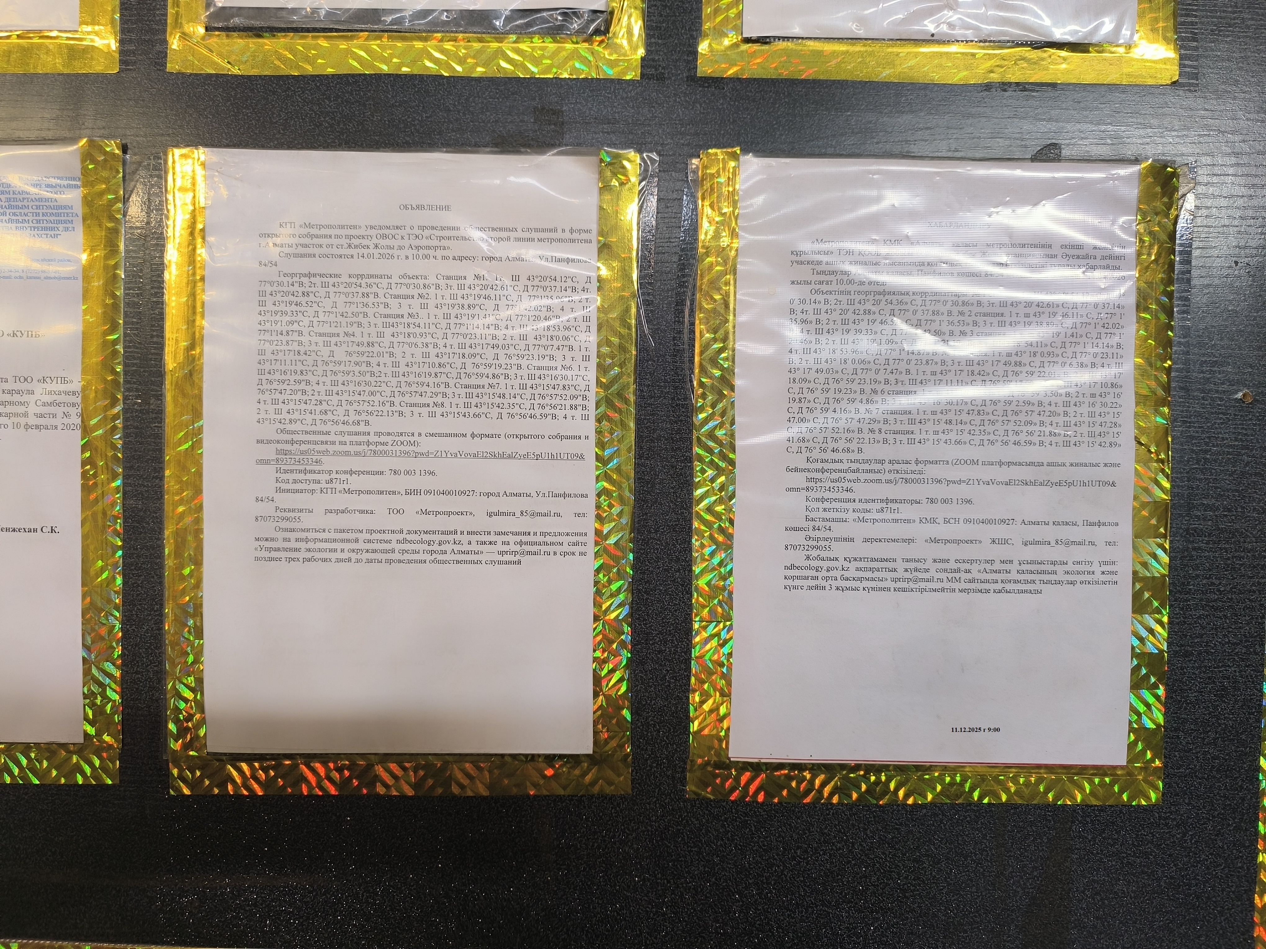6.3. расположение мест, специально предназначенных для Размещения печатных объявлений (доски объявлений): Ул.Панфилова 84/54. здание КГП Метрополитен, ул.Гоголя 58, ул.Айтеке би 63/4