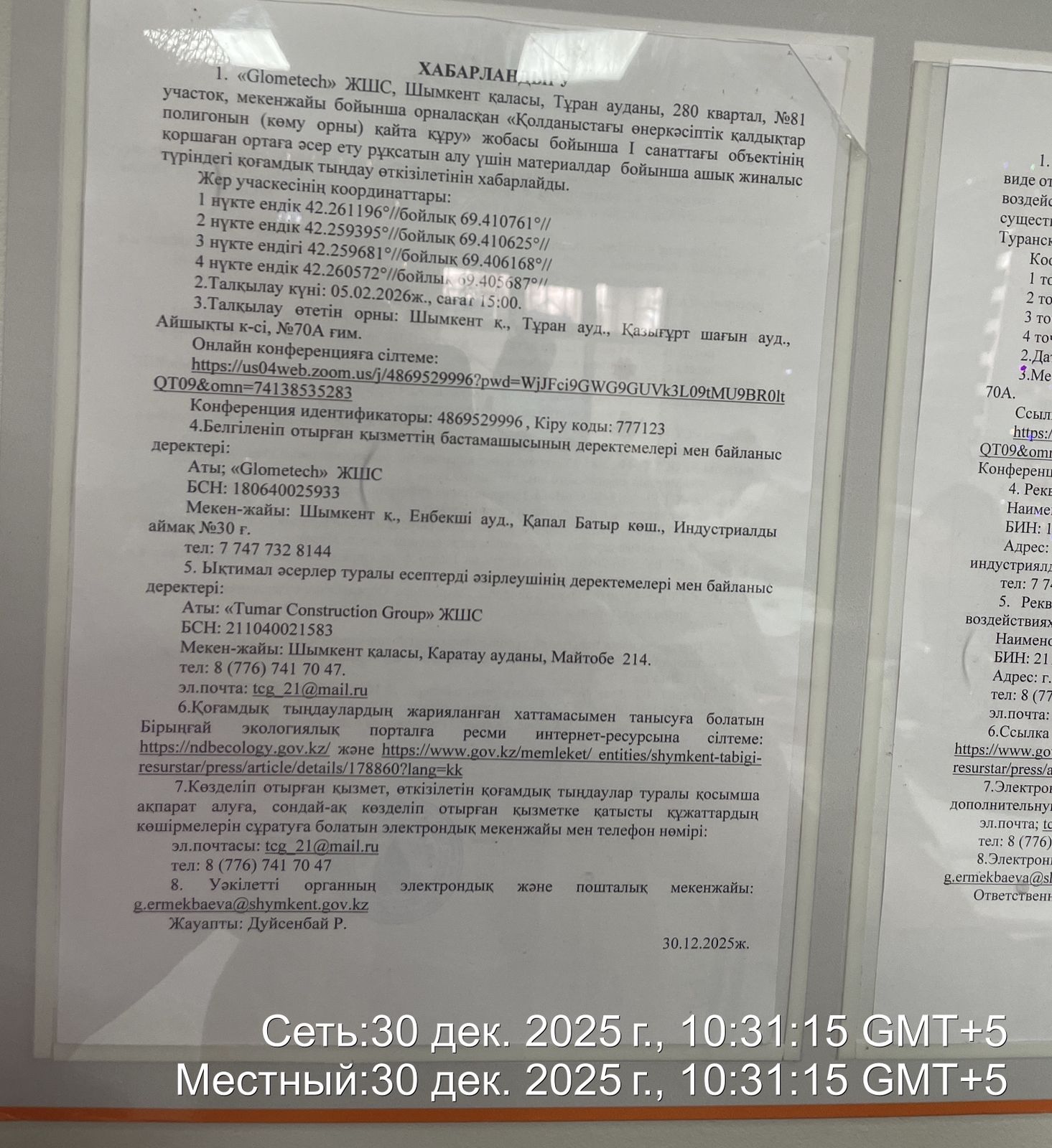 3. Общественные слушания организованны: Управление развития комфортной городской среды г.Шымкент, g.ermekbaeva@shymkent.gov.kz,