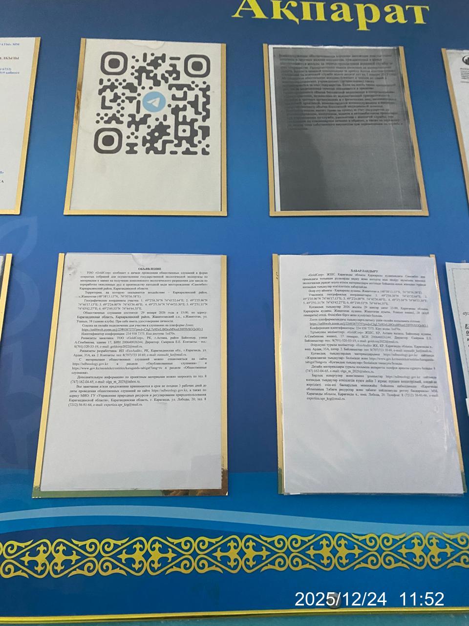 3. Общественные слушания организованны: Управление природных ресурсов и регулирования природопользования Карагандинской области, expertiza.upr_krg@mail.ru,