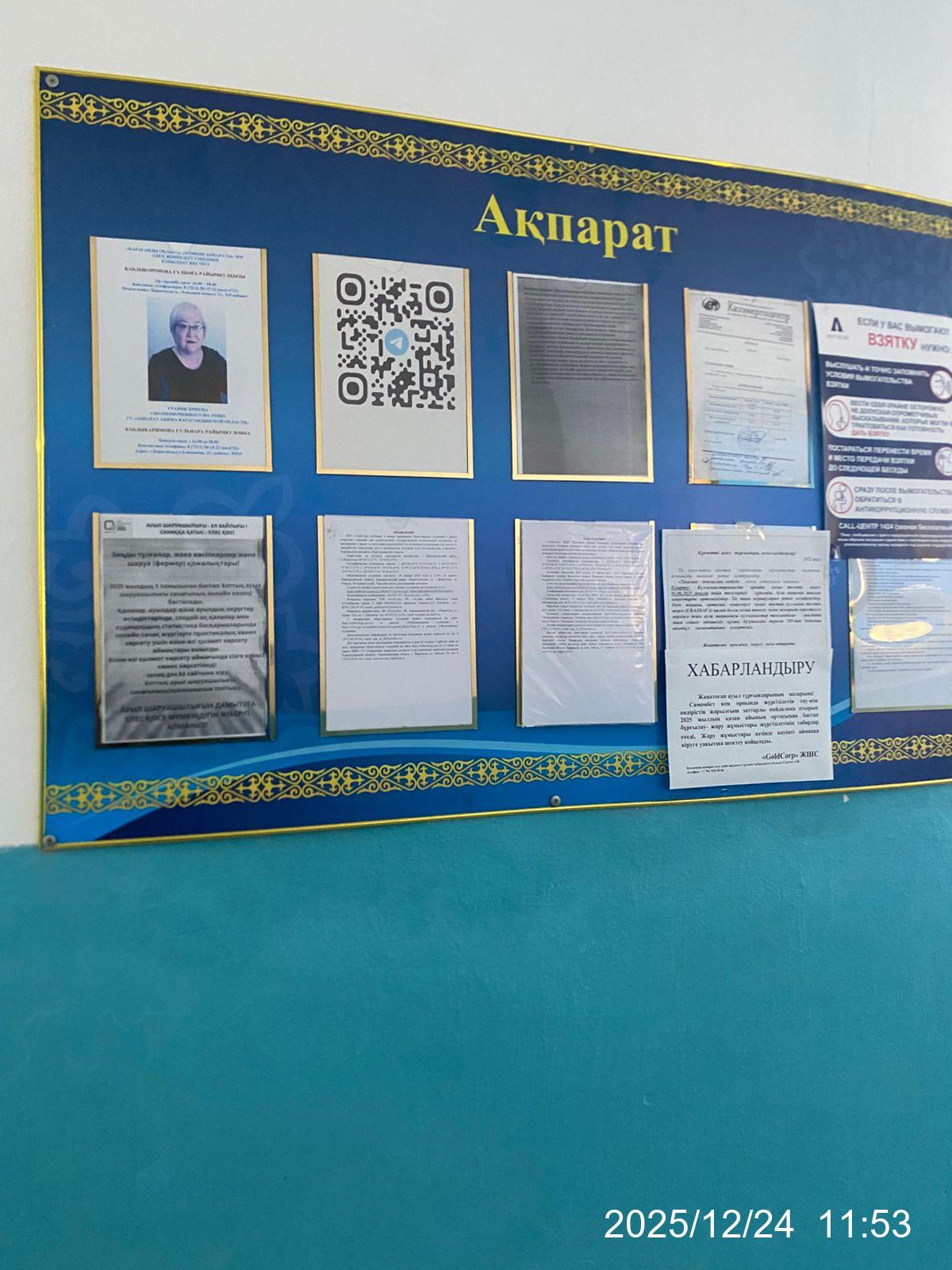 6.3. расположение мест, специально предназначенных для Размещения печатных объявлений (доски объявлений): 1. ГУ "Аппарат акима Жанатоганского сельского округа Каркаралинского района"; 2. Доска объявлений в общественном месте.
