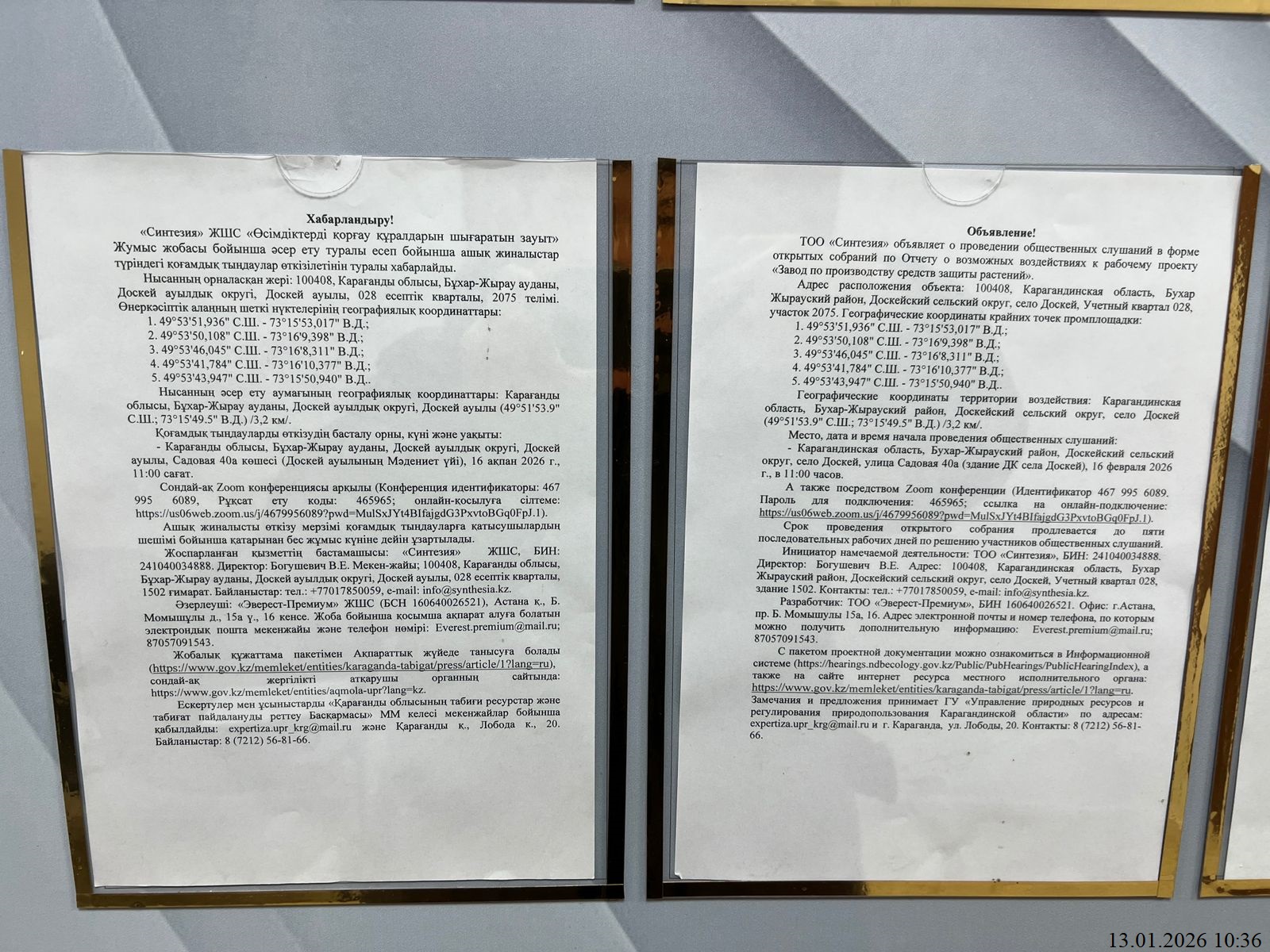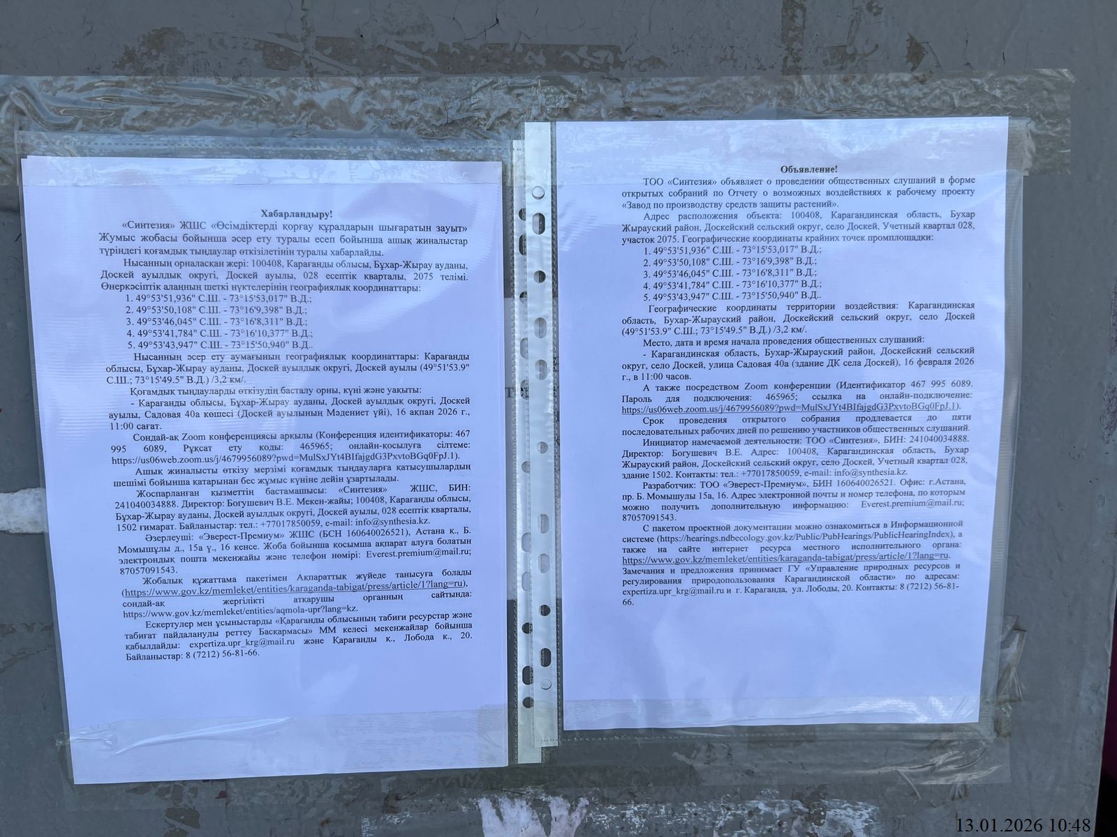 3. Общественные слушания организованны: Управление природных ресурсов и регулирования природопользования Карагандинской области, expertiza.upr_krg@mail.ru,