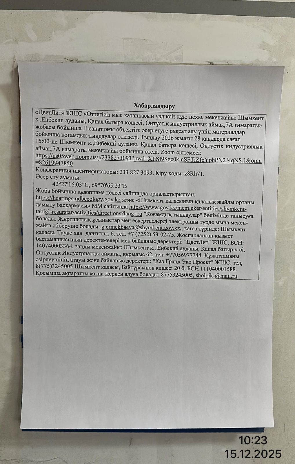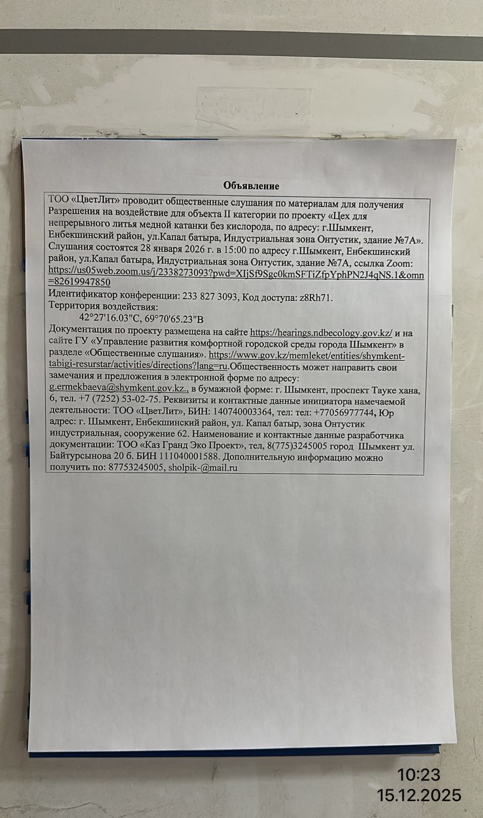 3. Общественные слушания организованны: Управление развития комфортной городской среды г.Шымкент, g.ermekbaeva@shymkent.gov.kz,