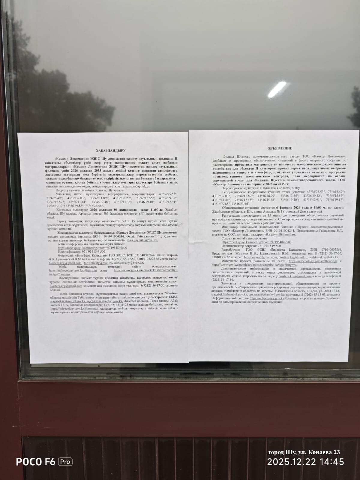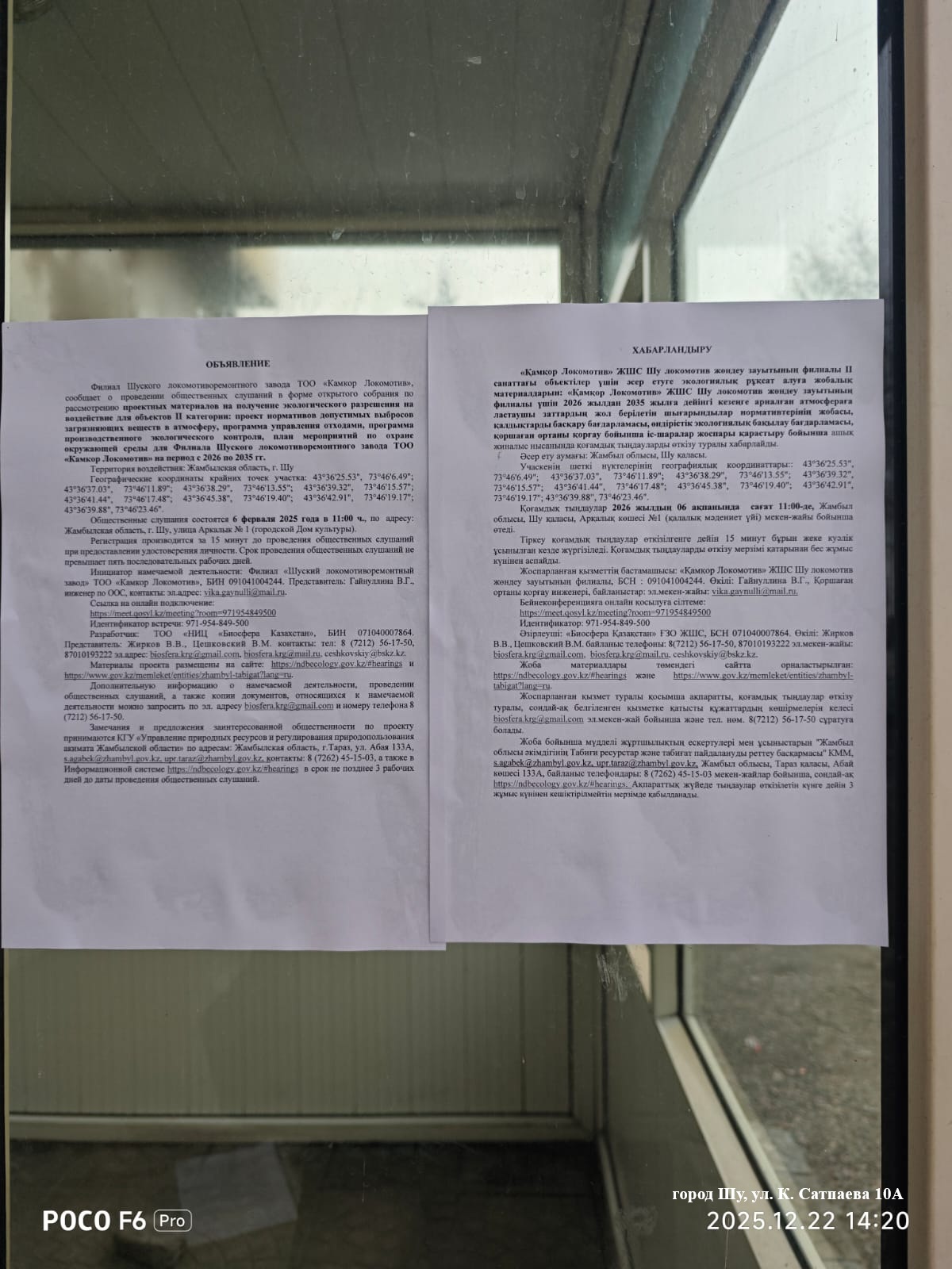 3. Общественные слушания организованны: Управление природных ресурсов и регулирования природопользования Жамбылской области, s.agabek@zhambyl.gov.kz,
