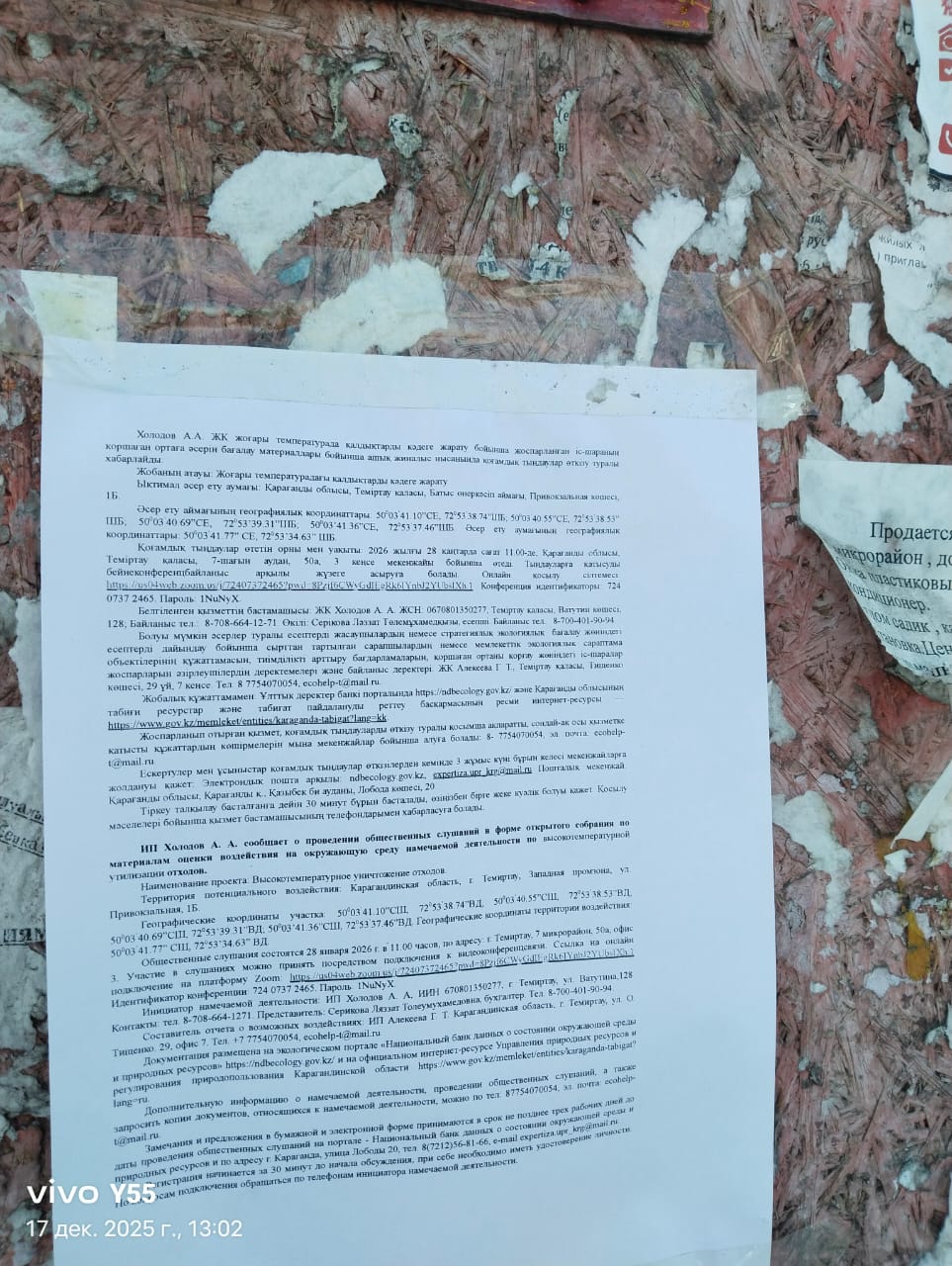 3. Общественные слушания организованны: Управление природных ресурсов и регулирования природопользования Карагандинской области, expertiza.upr_krg@mail.ru,
