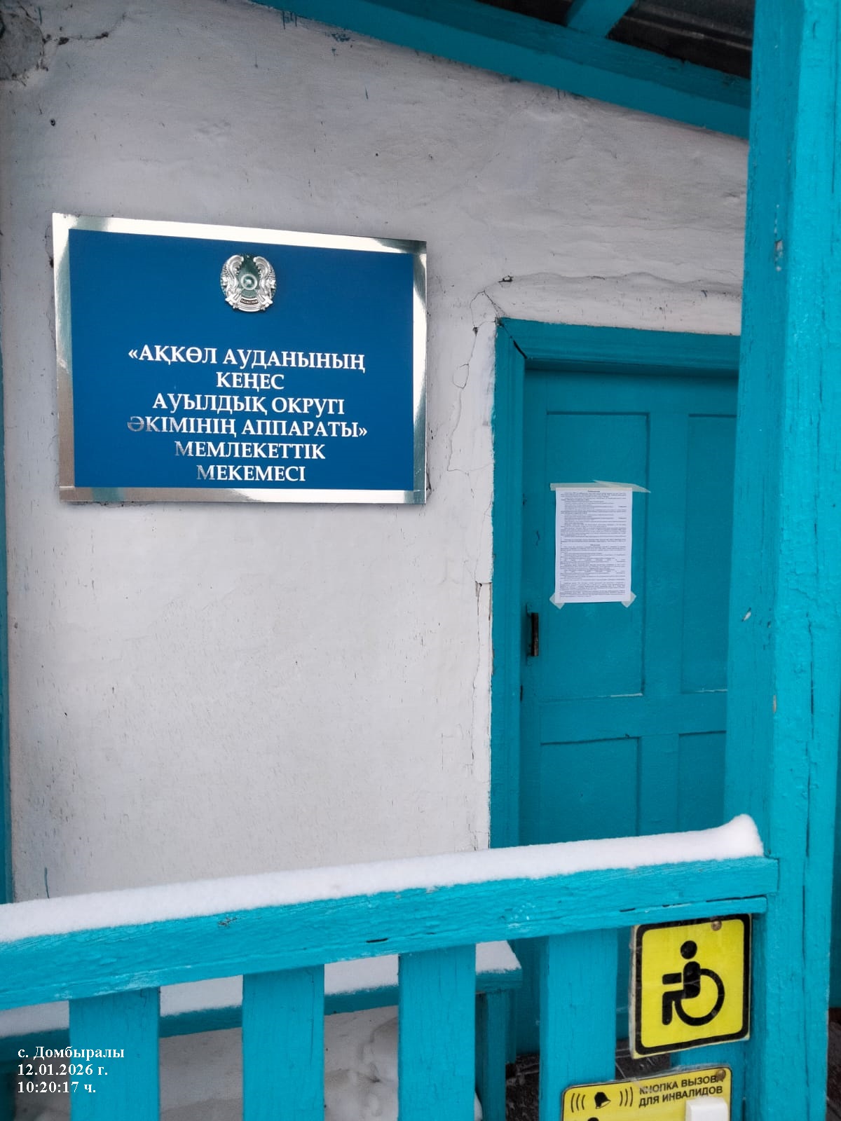 6.3. расположение мест, специально предназначенных для Размещения печатных объявлений (доски объявлений): Акмолинская область, Аккольский район, Кенесский с.о., а.Домбыралы, акимат, стенды для объявлений