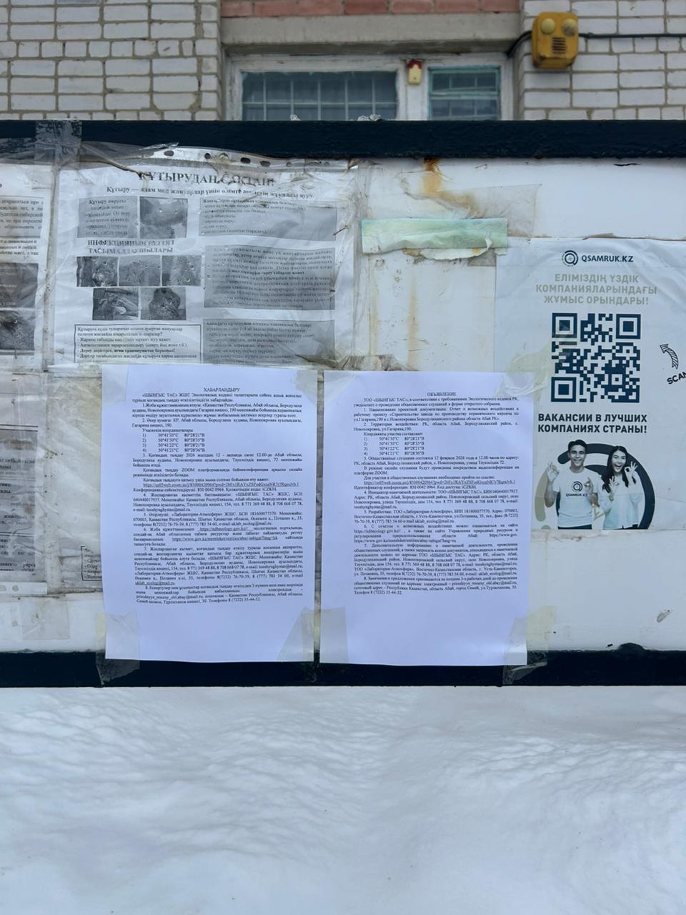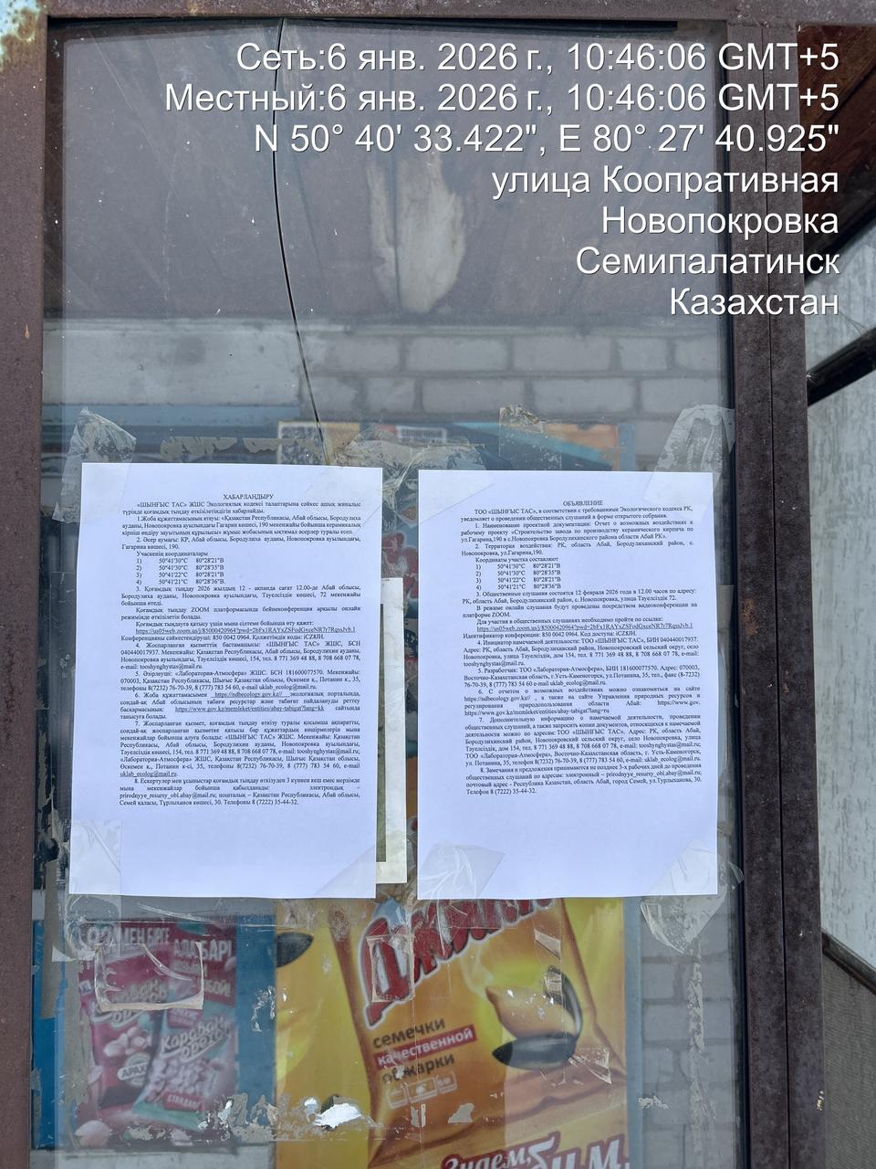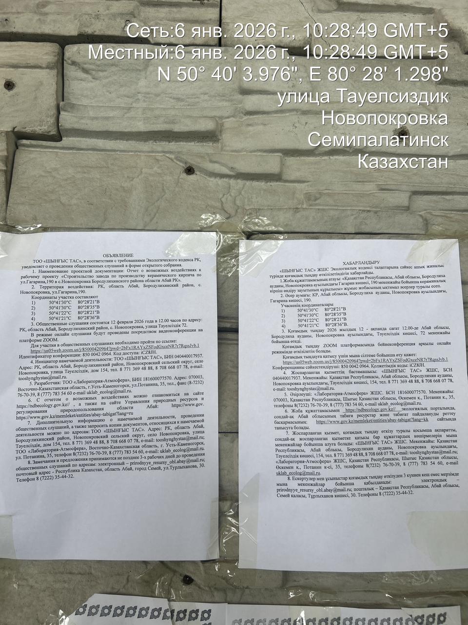 6. Объявление о проведении общественных слушаний на казахском и русском языках будет распространено следующими способами: