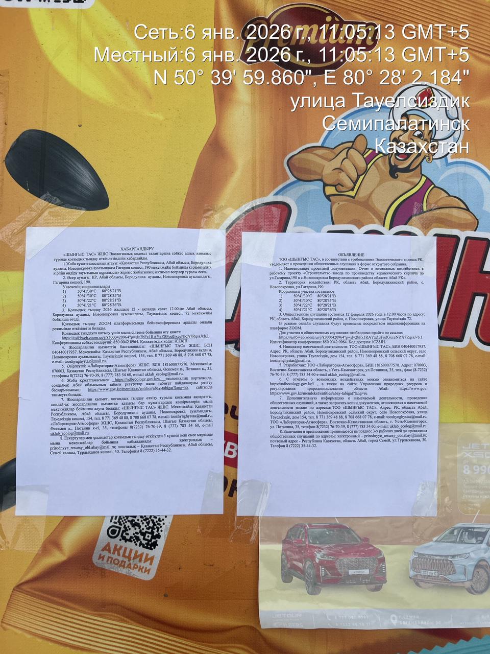 3. Общественные слушания организованны: Главный специалист УПР и ПР область Абай, prirodnyye_resursy_obl.abay@mail.ru,