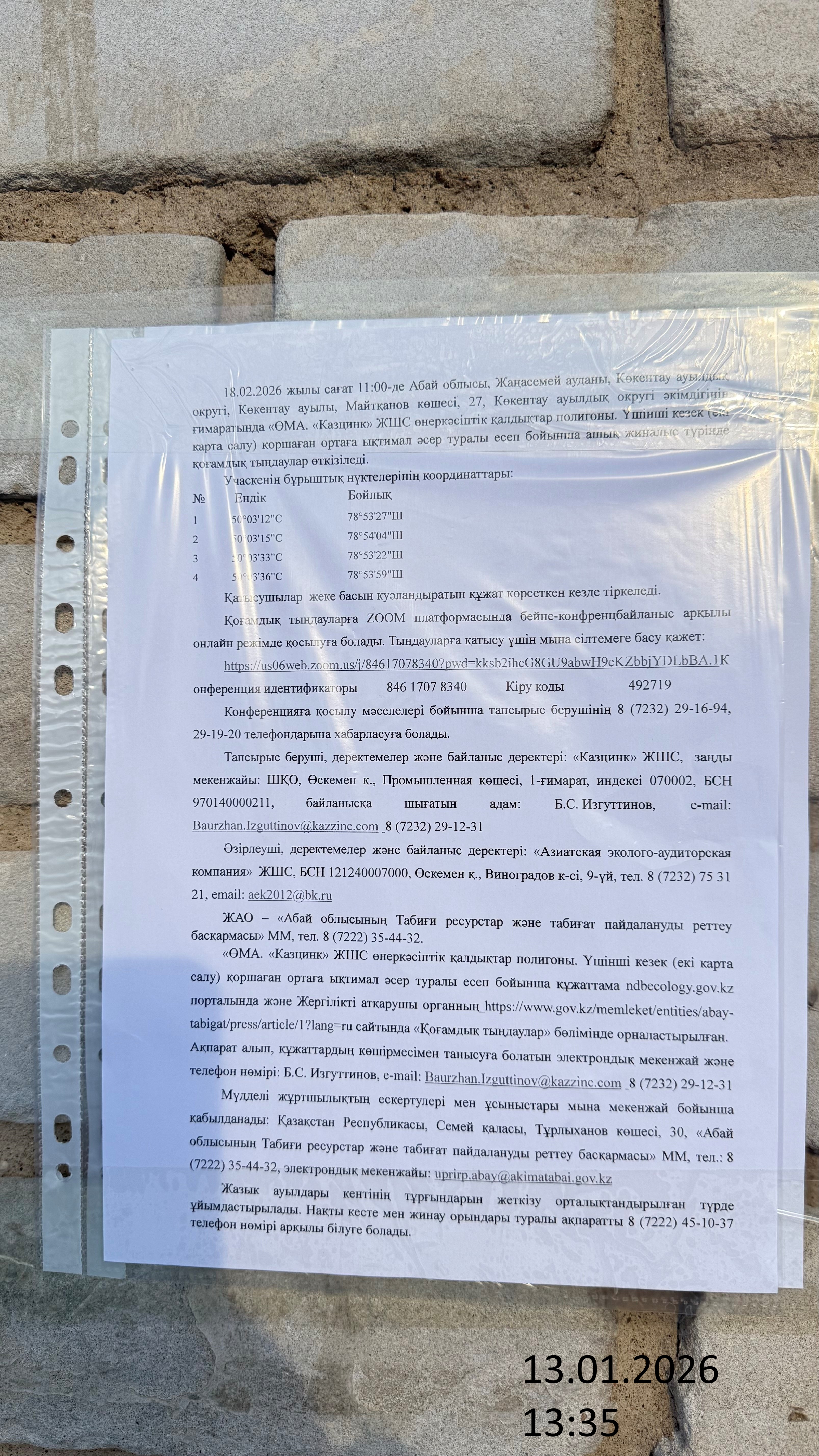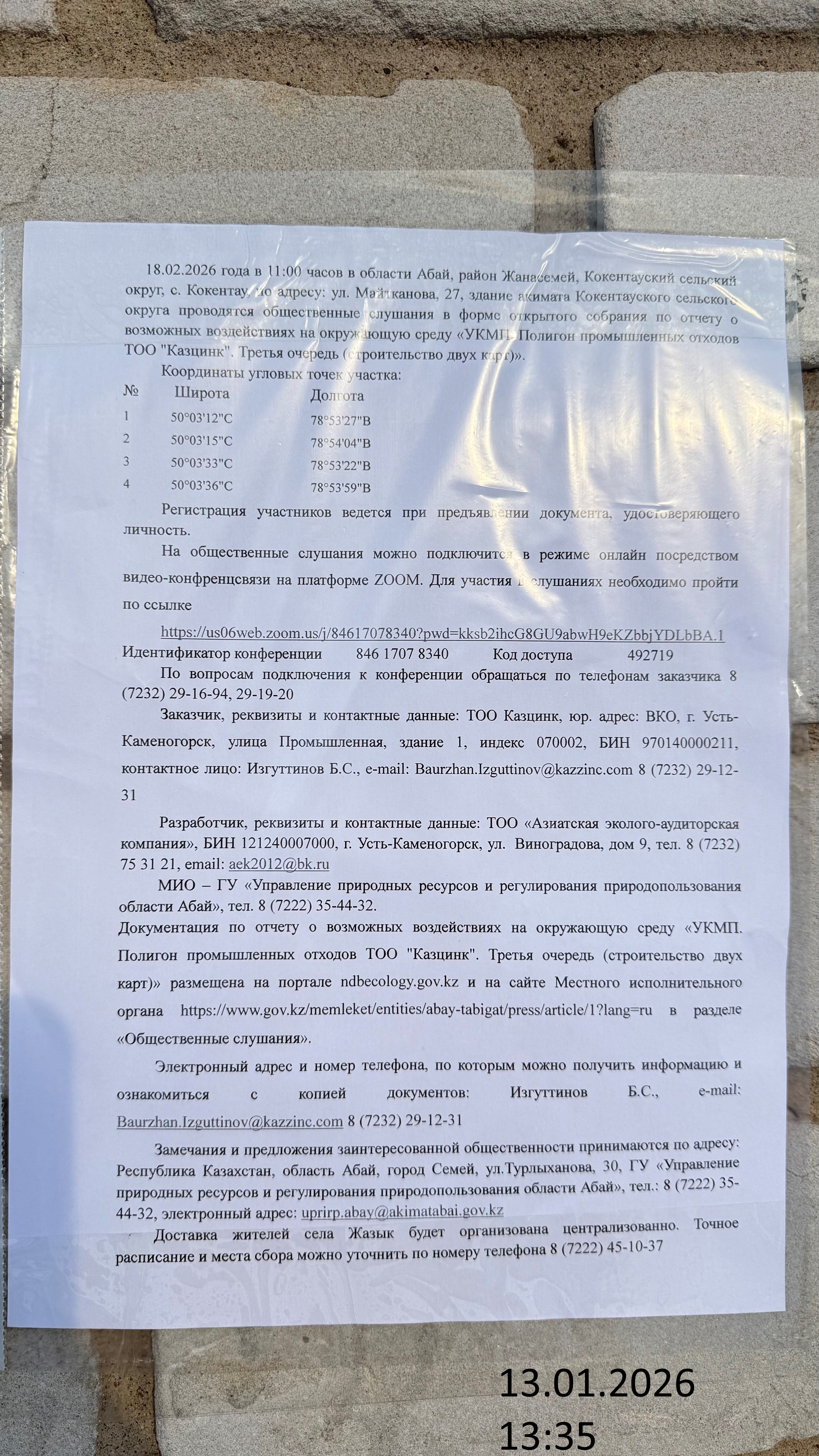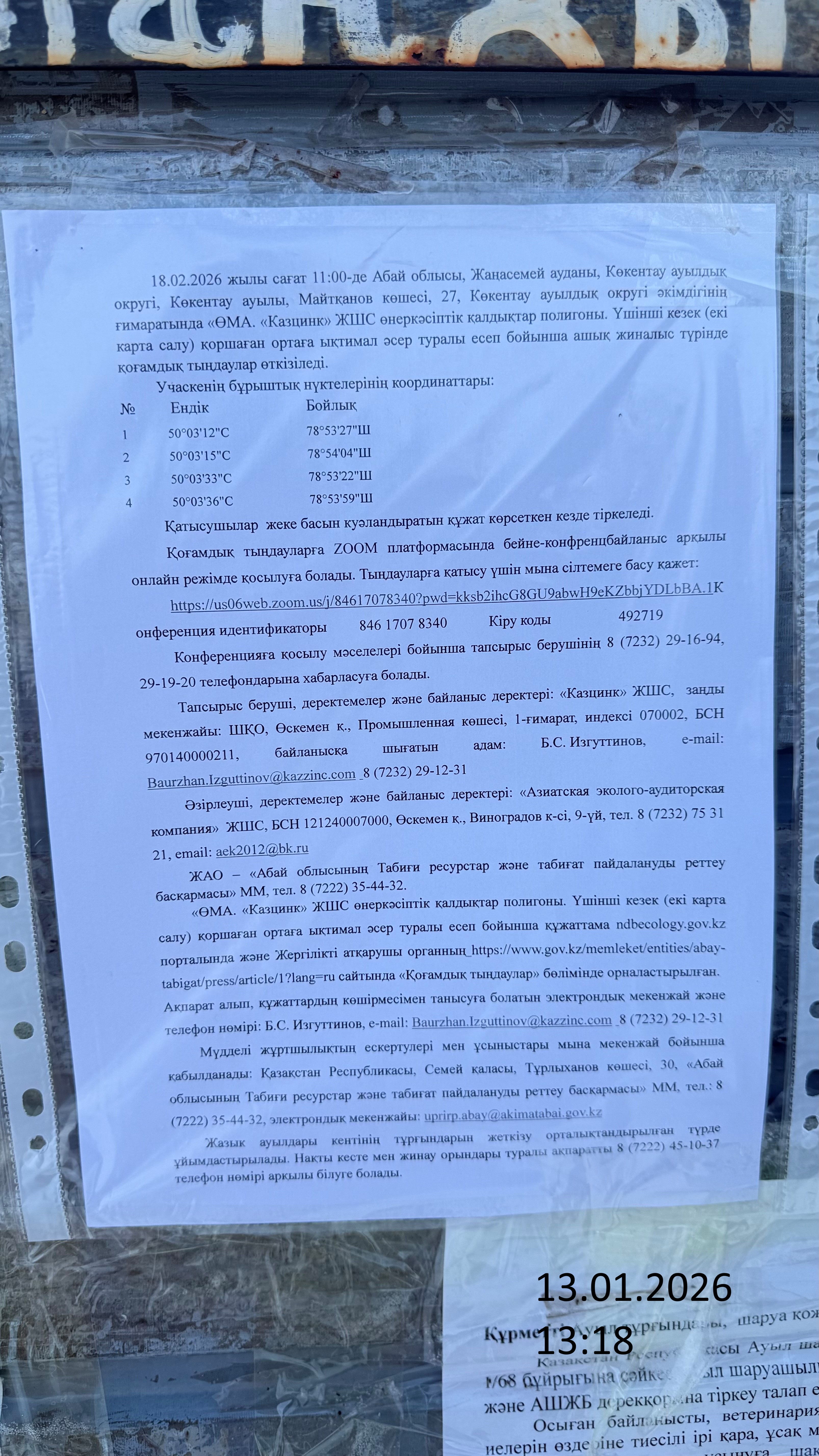 3. Общественные слушания организованны: Главный специалист УПР и ПР область Абай, prirodnyye_resursy_obl.abay@mail.ru,