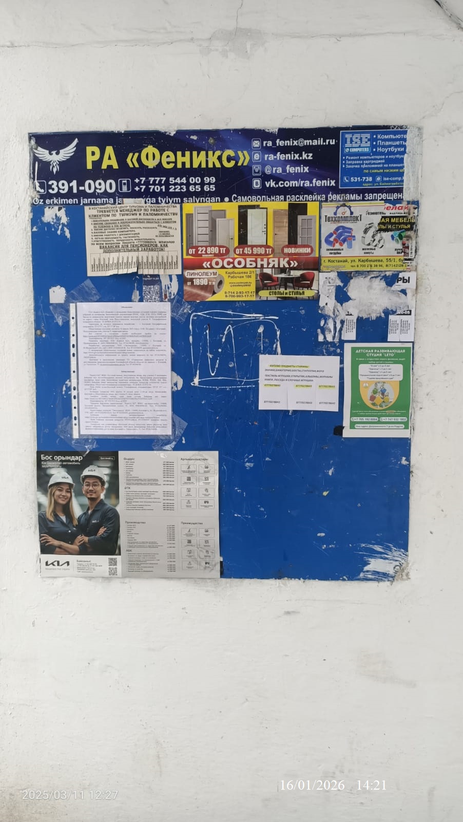 6.3. расположение мест, специально предназначенных для Размещения печатных объявлений (доски объявлений): Доски объявлений г.Костанай