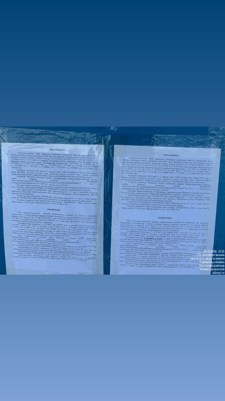 3. Общественные слушания организованны: Управление природных ресурсов и регулирования природопользования Карагандинской области, expertiza.upr_krg@mail.ru,